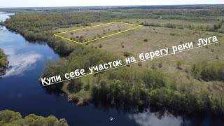 С удобным подъездом, на ПЕРВОЙ ЛИНИИ р. Луга 110 метров личного берега, продается участок 390 соток (можно увеличить) сельхозназначения.