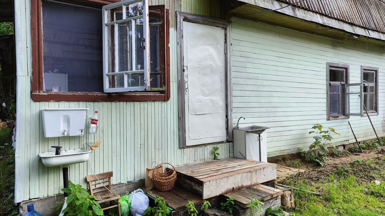 Во второй половине дома с отдельным входом с другой стороны живет хозяин. Территория участка поделена без забора.