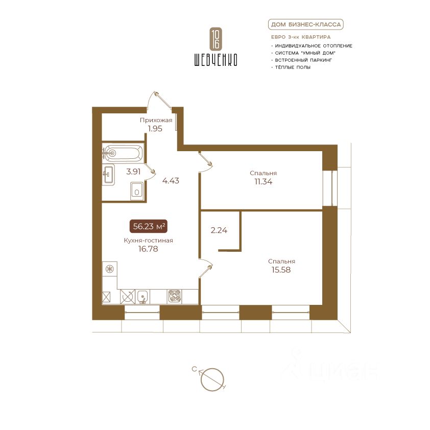 Общая площадь56,23 м2