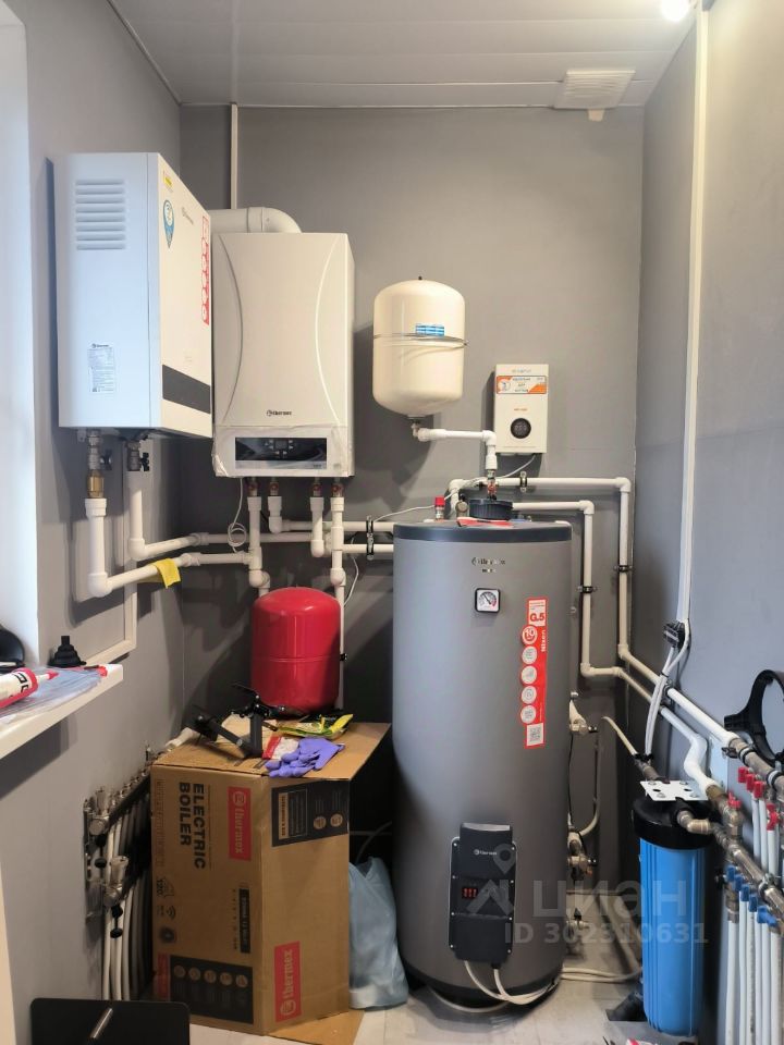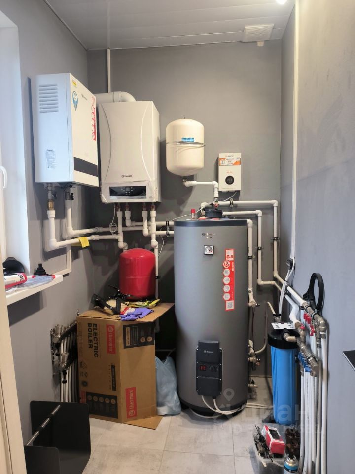 Впольные конвекторы и теплый пол в гостиной, спальнях радиаторы, тёплый пол в прихожей и санузлах. Газовый котёл с бойлером косвенного нагрева на 200 литров