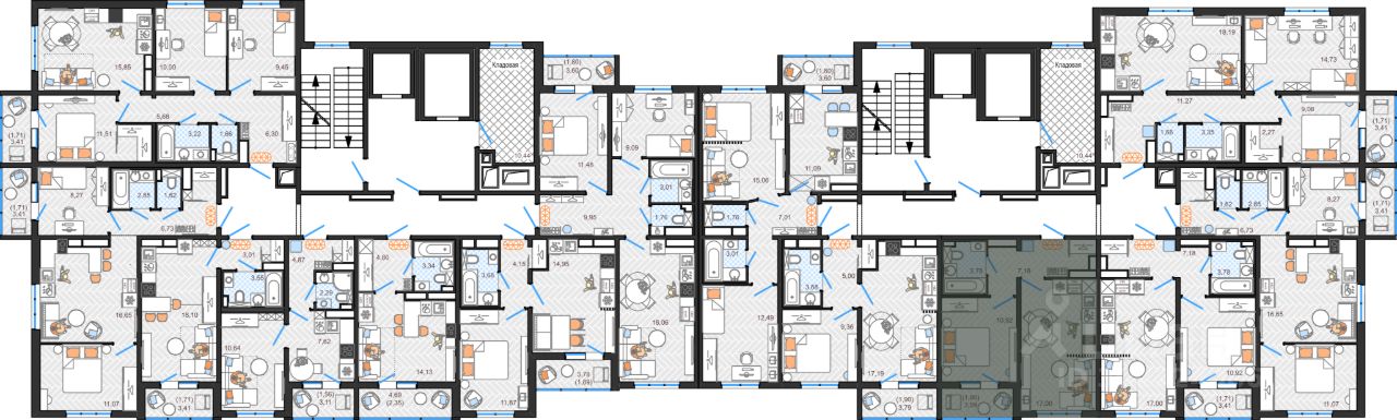 Квартира с функциональной и продуманной планировкой: большая кухня и только полезные метры. Сдается в базовой отделке: выполнена стяжка пола, лоджии остеклены, установлены счетчики, заведен кабель для подключения интернета. Установлены качественные металлические входные двери с надежной фурнитурой. Дополнительно вы можете выбрать любой вид отделки от застройщика — ''whitе bох'' или ''whitе bох PRO'' с полностью готовым санузлом, а также ''под ключ'' в стиле Утро или Вечер. В каждом подъезде — колясочные для хранения малогабаритного транспорта, видео-домофонная связь, вход в подъезд по смарт картам. Холлы с прозрачными входными группами и современным интерьером. Есть возможность приобрести кладовую на своем этаже площадью 10,44 м2.