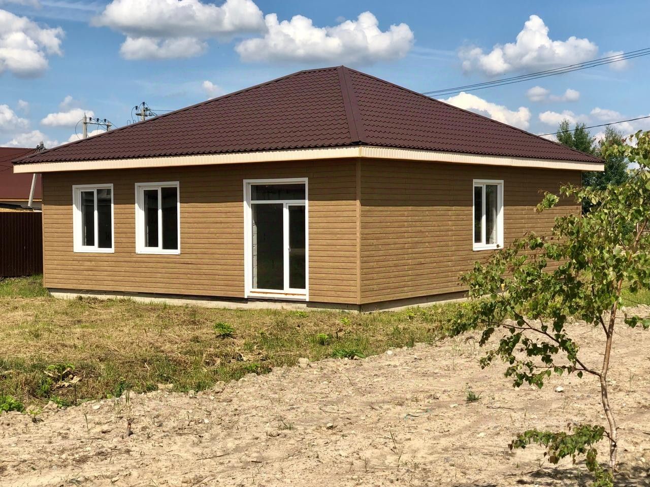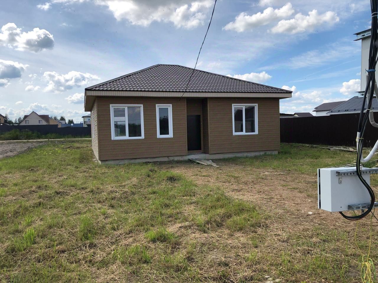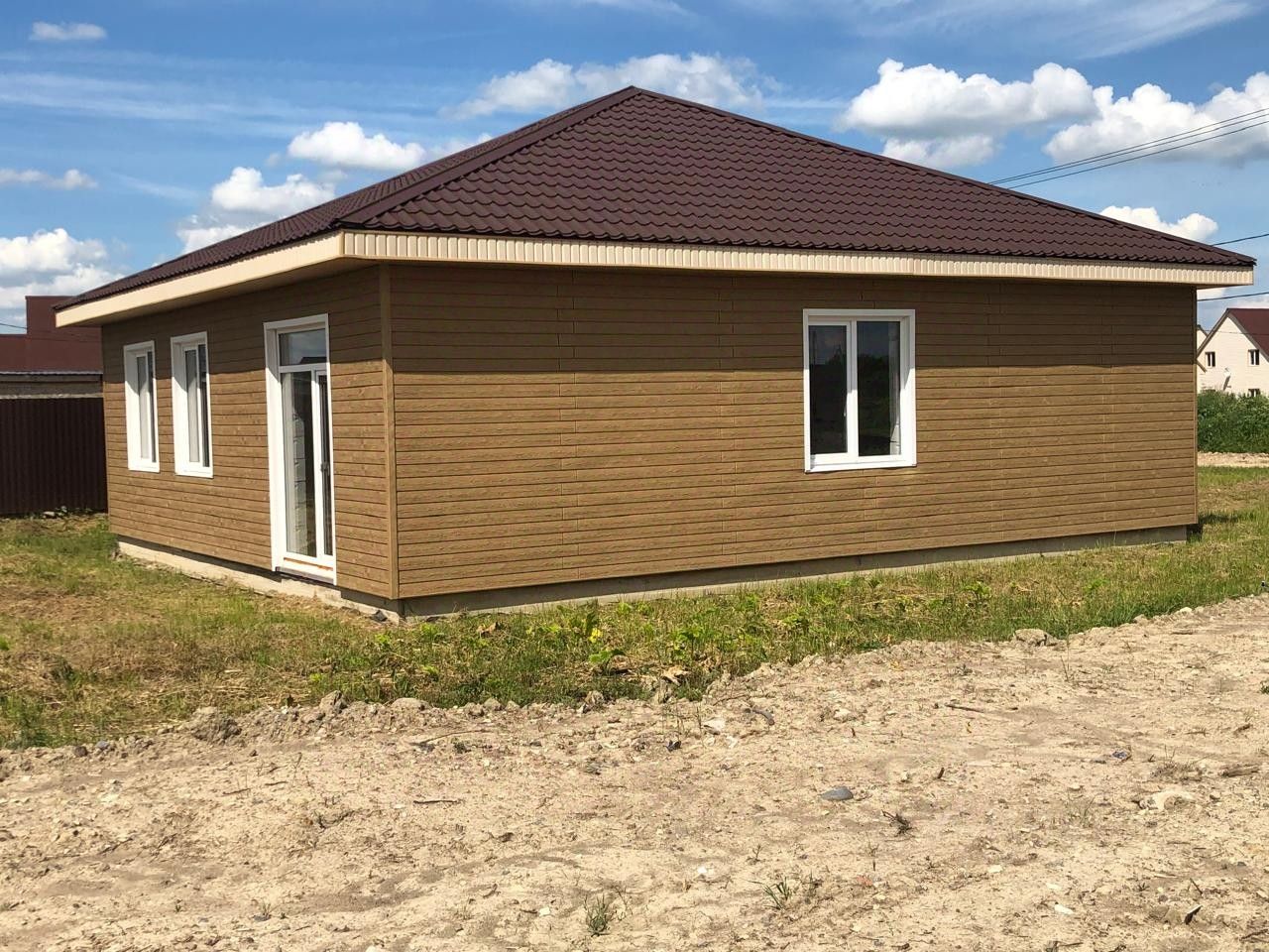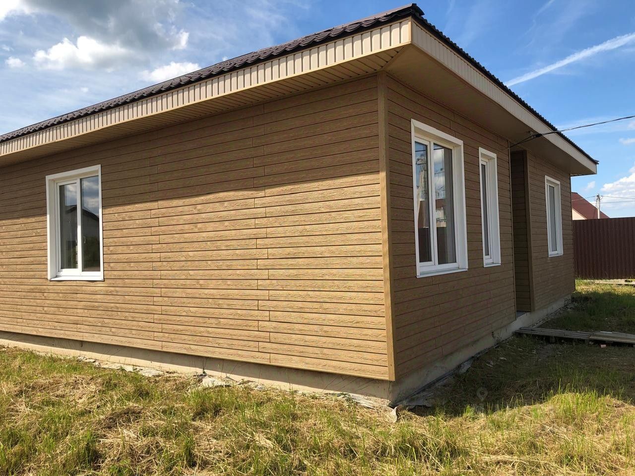 К вашему вниманию предлагается небольшой уютный дом. Общая площадь 106 квадратных метра, кухня-гостиная 36 квадратных метра, комнаты изолированные 20 и 15.5 квадратных метра, совмещённый санузел 7 квадратных метра, место под гардеробную. Фундамент монолитная плита 35 см, газобетон 300, стеклопакеты Энерго сберегающее, вывод под канализацию ,отопление , водоснабжение, облицовка сайдинг.