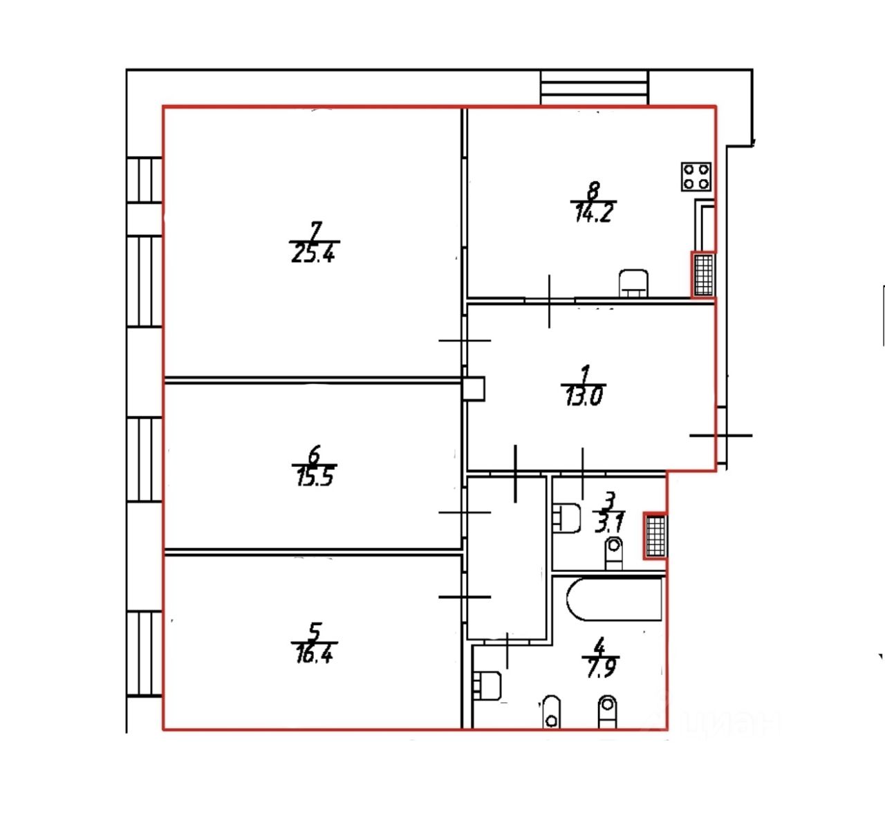 По планировке две изолированные комнаты, просторная гостиная, кухня, два санузла.