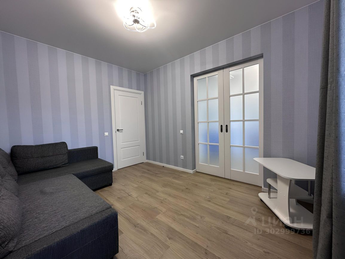 Планировка смежно-изолированная, комната 12 метров разделена с кухней распашными дверями.