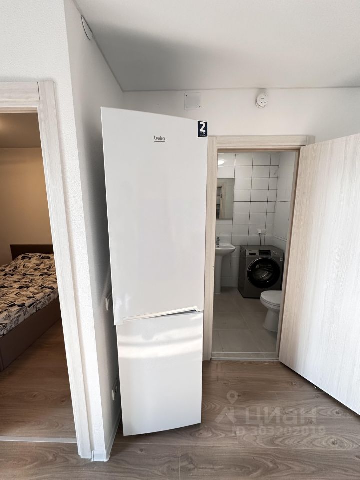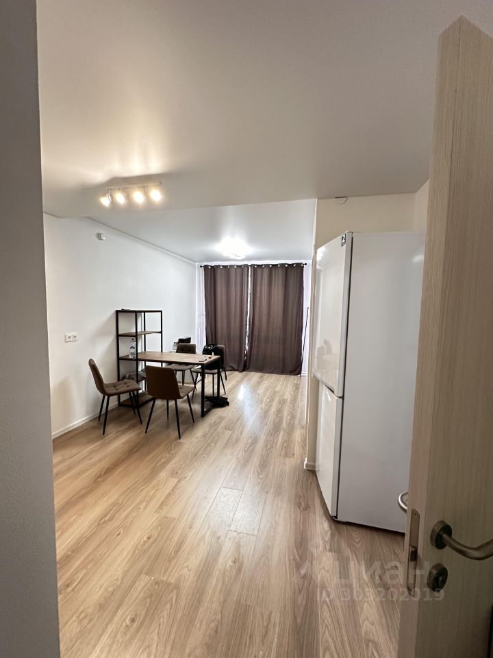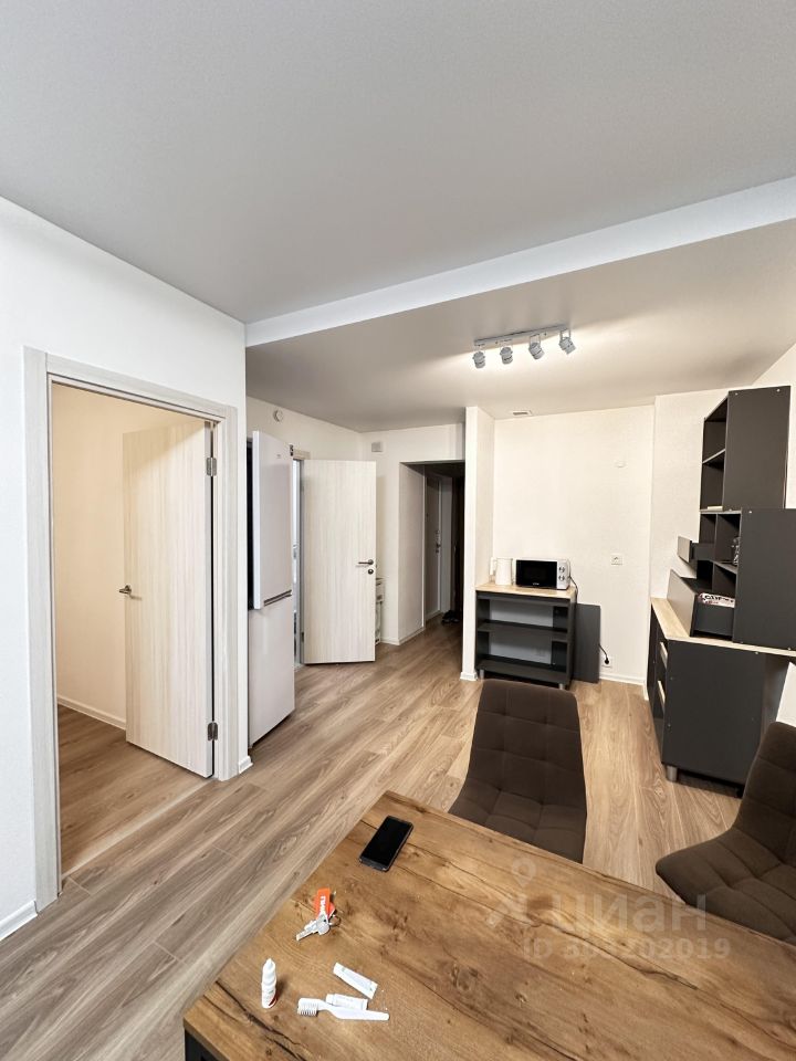 Имеется кровать. Сделан свет. Готовая ванная комната. В кухне-гостиной имеется стол со стульями, холодильник, чайник и микроволновая печь. Кухонный гарнитур не собран (временный вариант - при долгосрочной аренде возможна установка в счет аренды). Вся мебель и техника новая!