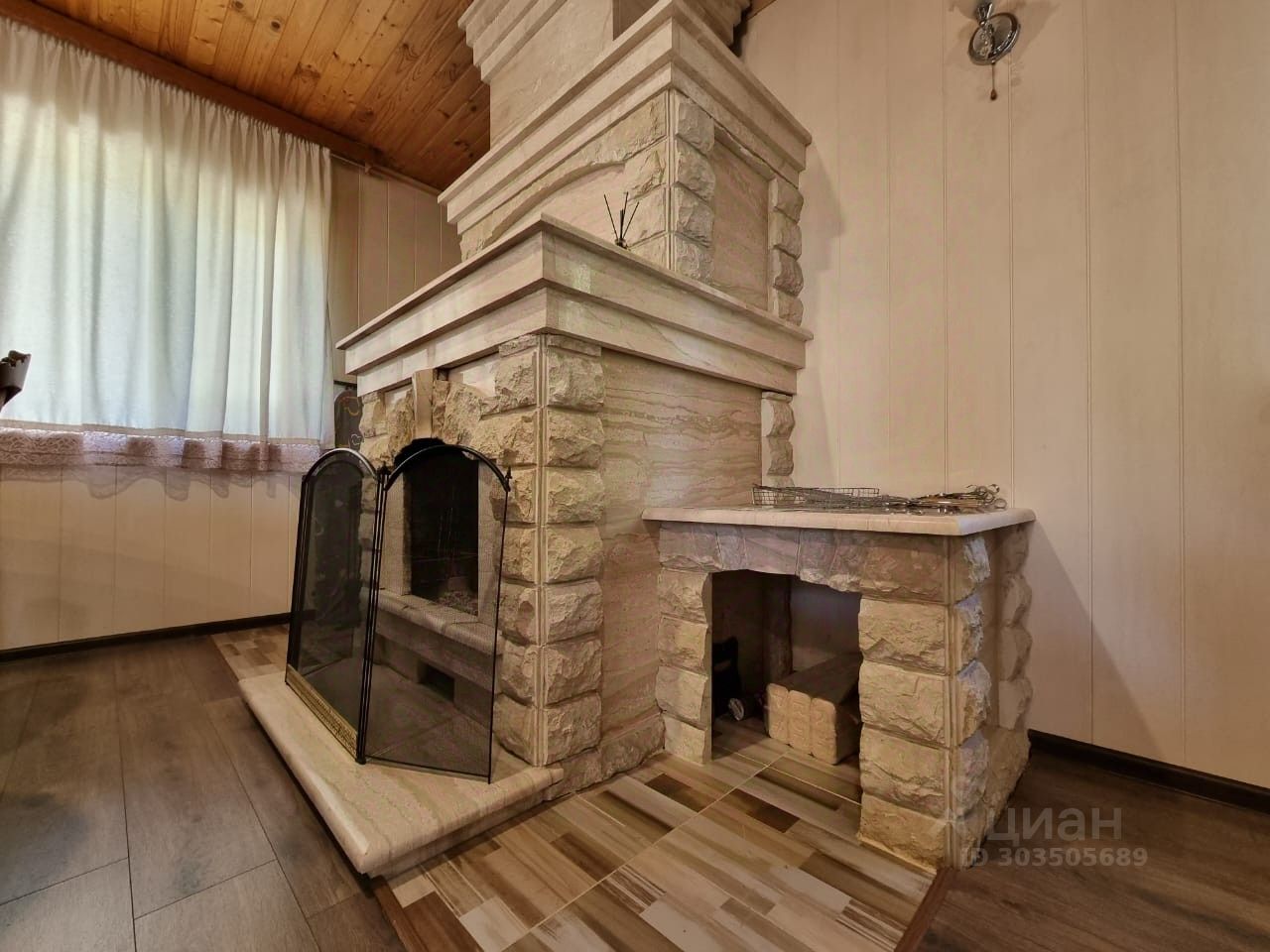 На 1 этаже: кухня-гостиная с камином, обеденным столом на 8 персон и угловым диваном.