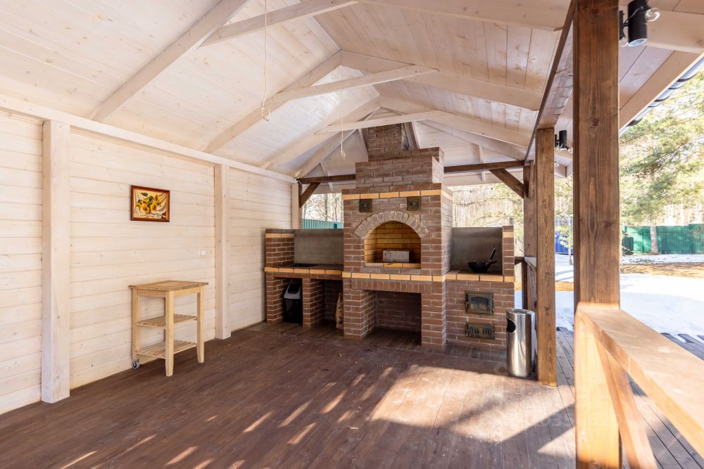 Беседка обогревается двумя инфракрасными обогревателями, подходит для круглогодичного использования. Оборудована зона барбекю.