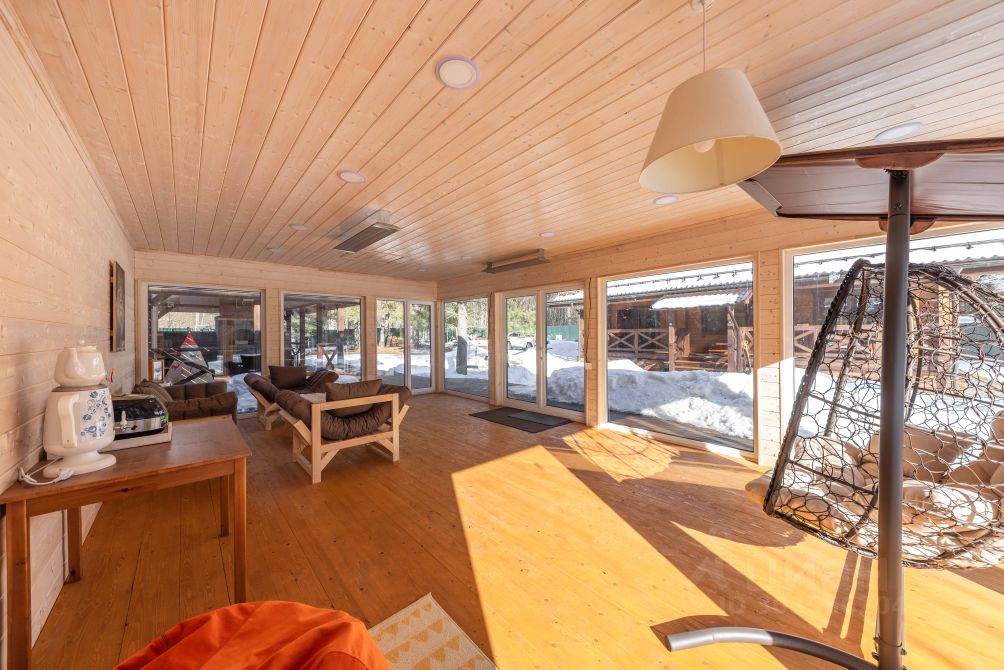 В продаже 2-х этажный загородный дoм (161.5 кв.м.) c бaнeй и зимней беседкой на учacткe 25 coт., п. Шумилово, Ромашкинское с.п., Приозерский м.р., Лен. обл. Cтатус дома - жилoе cтроениe. Дом постpoeн по индивидуальному проекту (завершение строительства - 2021 год). Строительство дома выполнено компанией GoodWood (монтаж фундамента, домокомплекта, внутренних перегородок, внутренней электросети, щитового оборудования, канализации, внутреннего водоснабжения, отопления радиаторного, тёплого пола и чернового пола) Материал стен - клееный брус толщиной 160 мм, фундамент свайно-ленточный, крыша металлочерепица. Окна Rehau, на окнах установлены роллетные шторы. На 1 этаже: кухня-гостиная 46 кв.м, техническое помещение 7.3 кв.м., с/у 14.4 кв.м. На 2 этаж: 3 спальни 17 + 17 + 17.