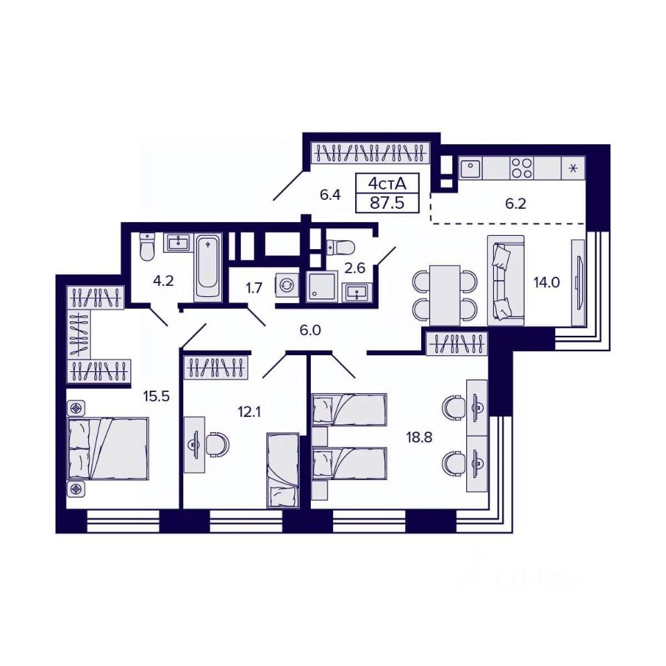 Общая площадь87,5 м2