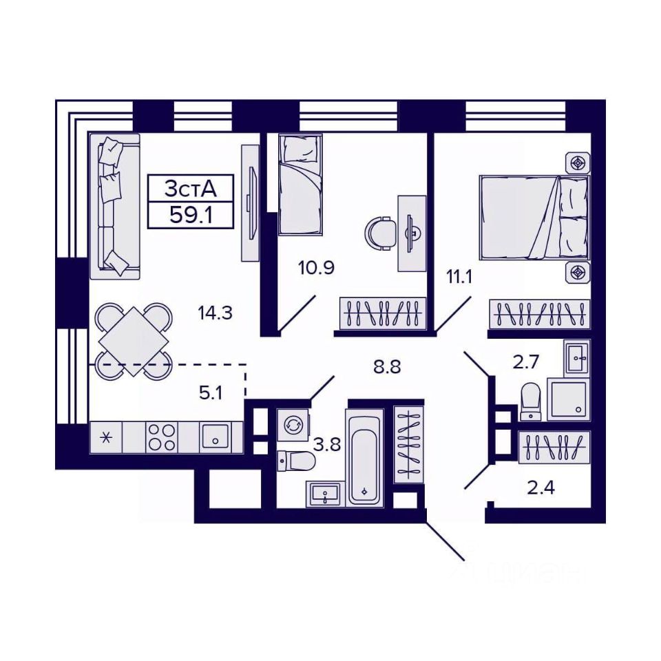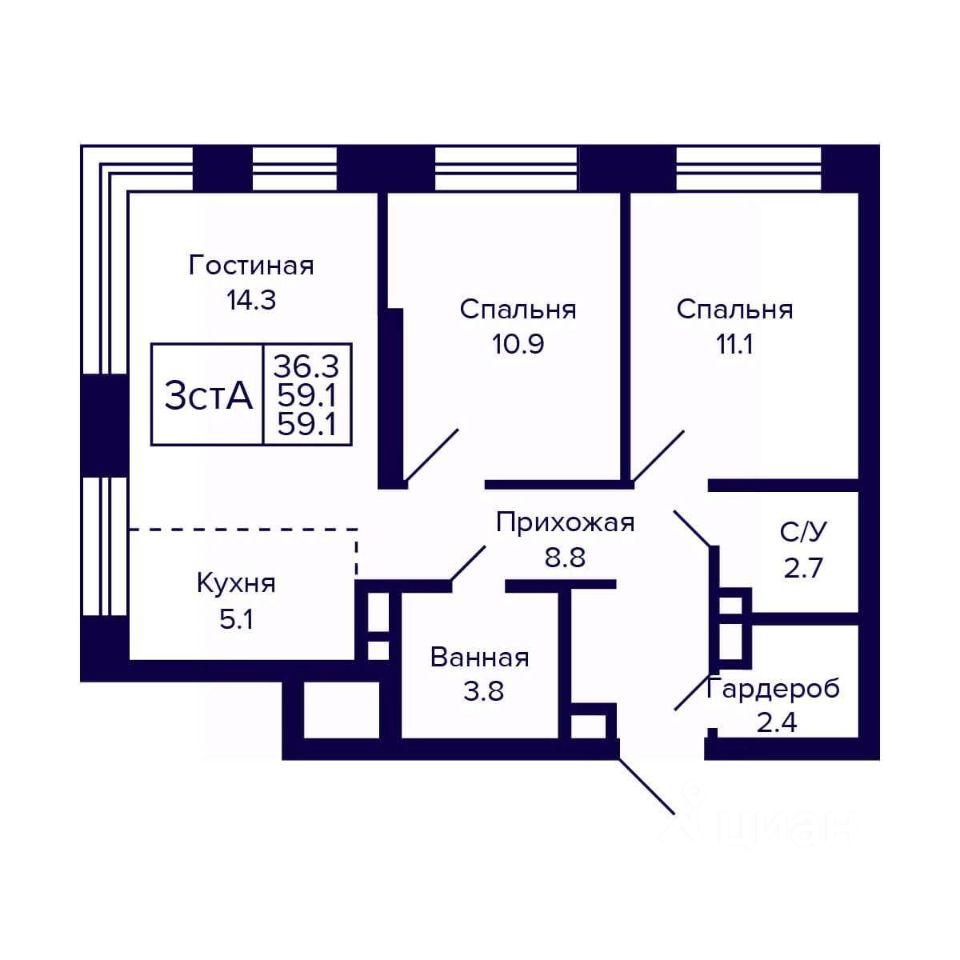 продам 3-к, Грибоедова, 1 стр.11 300 000 ₽