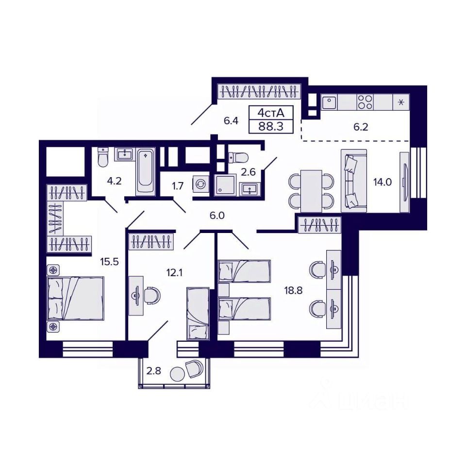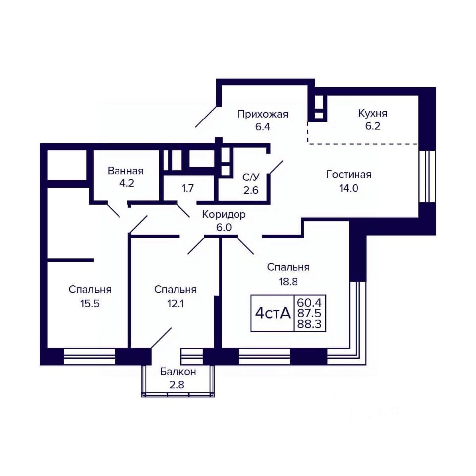 Общая площадь88,3 м2
