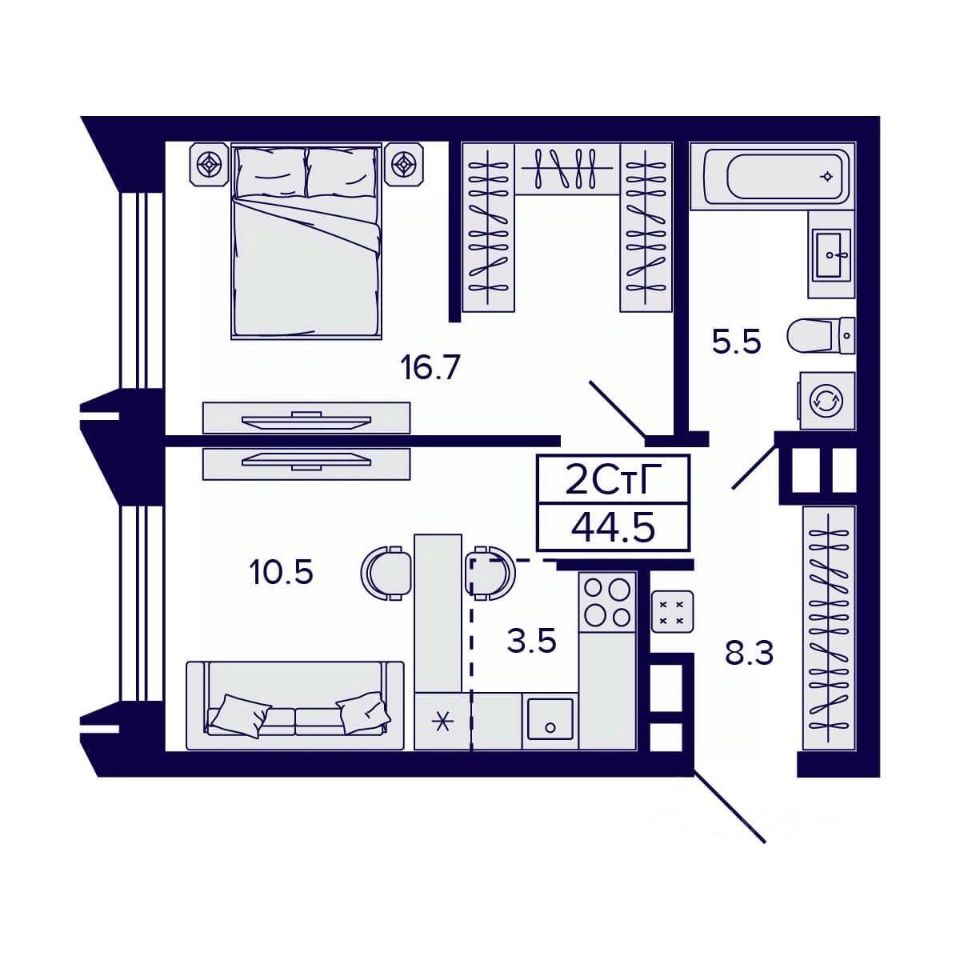 Общая площадь44,5 м2