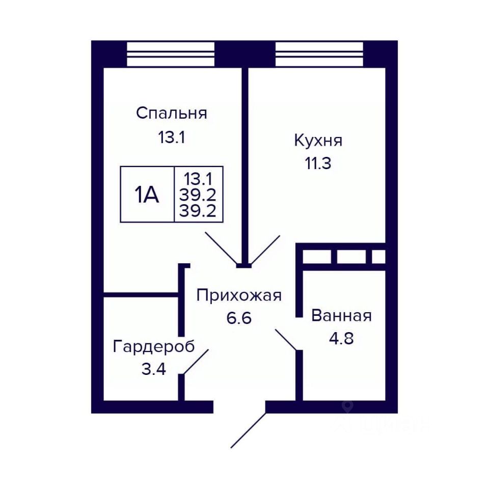 Общая площадь39,2 м2