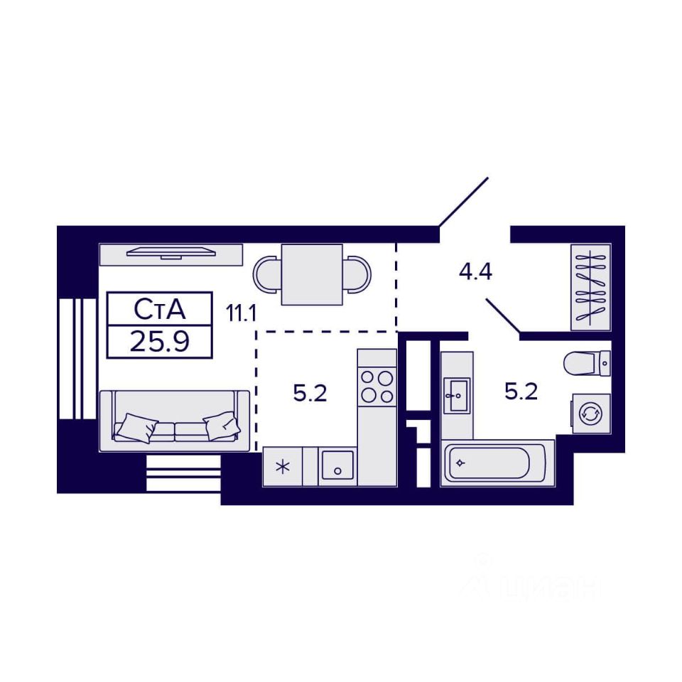Общая площадь25,9 м2