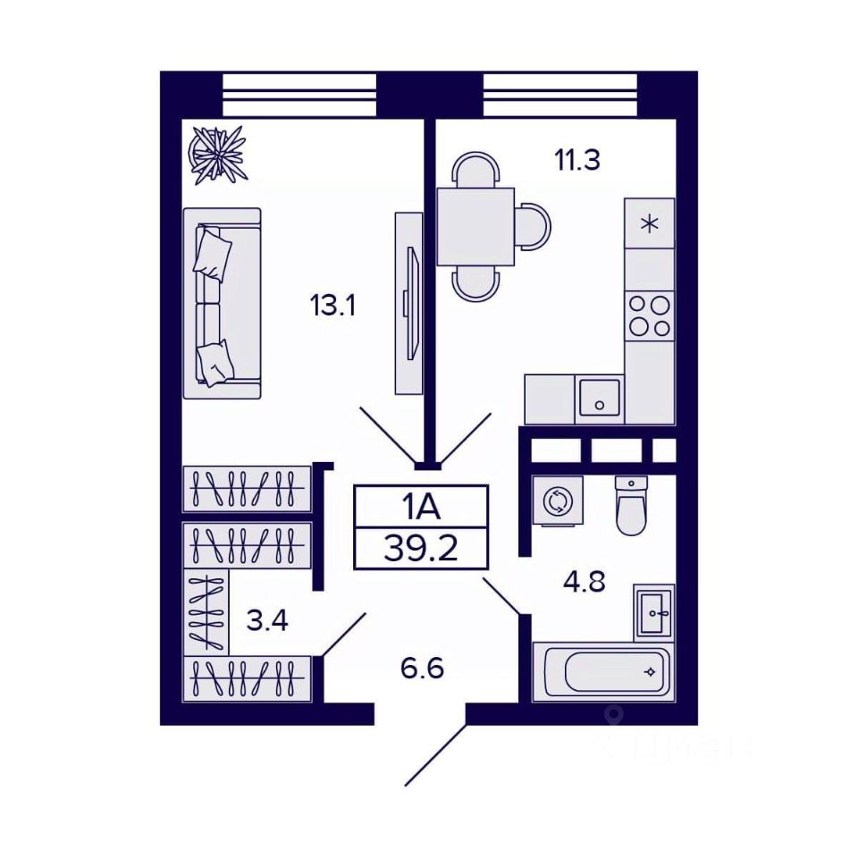 Общая площадь39,2 м2