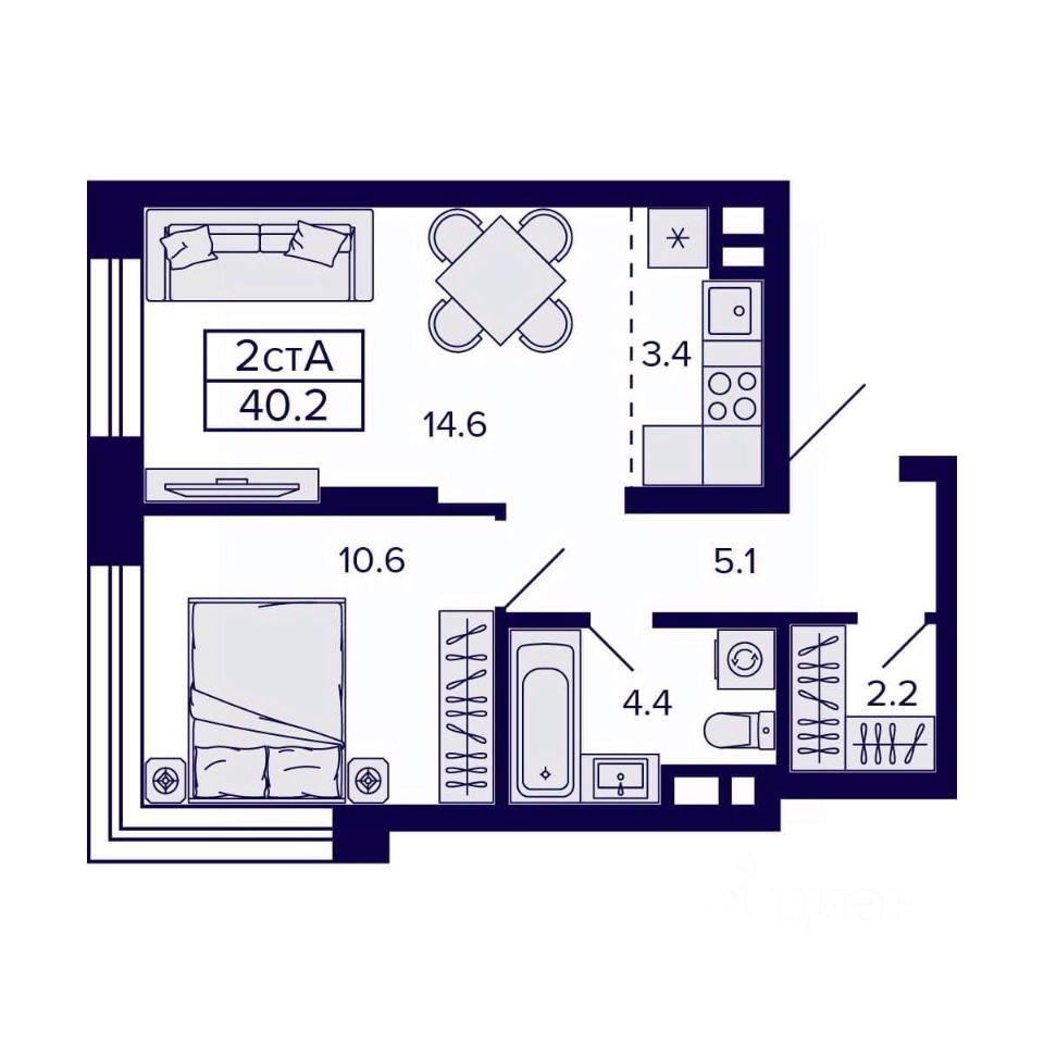 Общая площадь40,2 м2