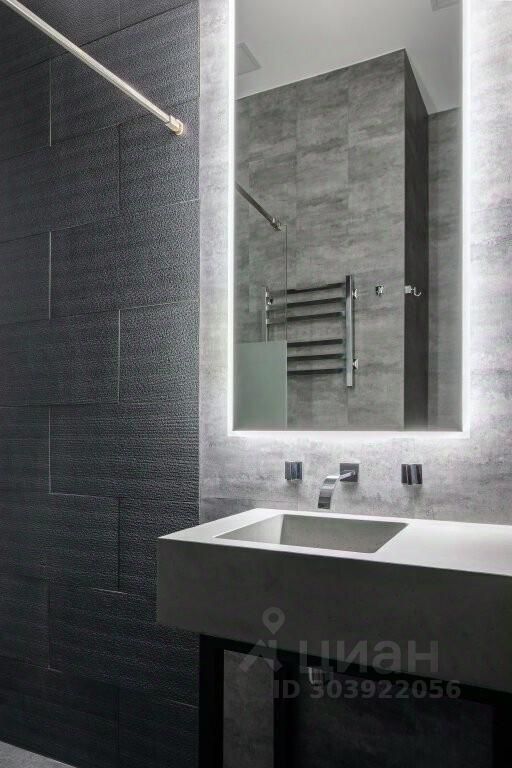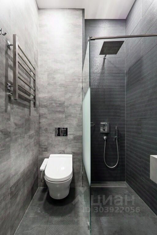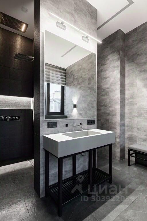 Мастер-спальня выходит окнами в тихий итальянский дворик. Просторная ванная комната с окном так же выдержана в минималистичной серой гамме. Предусмотрено много шкафов и мест для хранения.