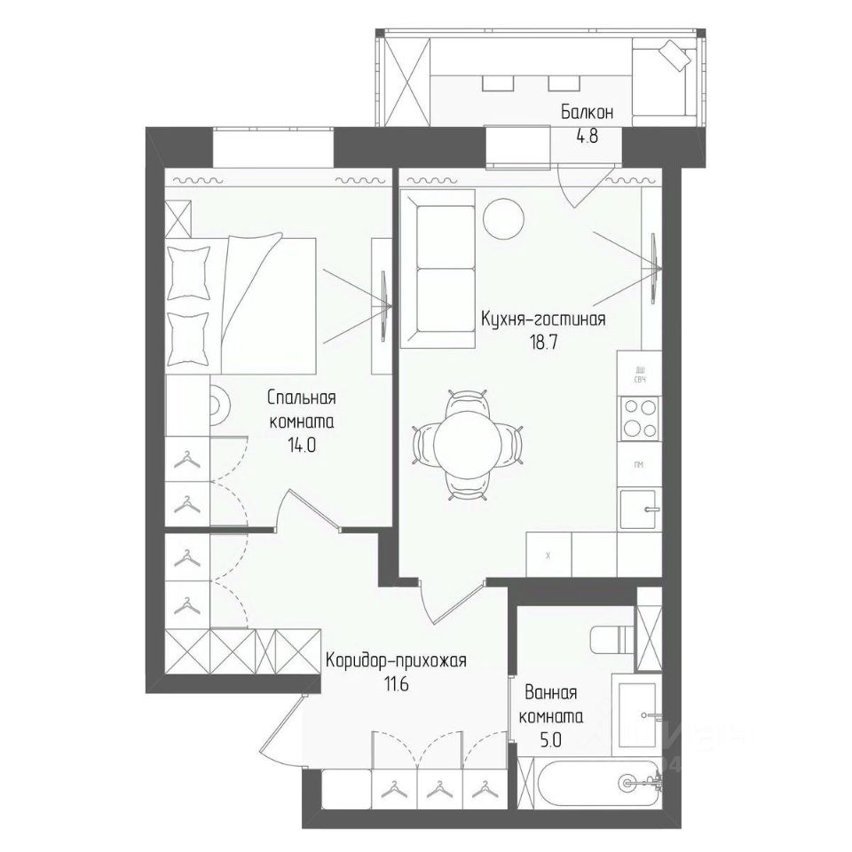 продам 2-к, Серафимовича, 12 корп. 2 стр.9 053 650 ₽