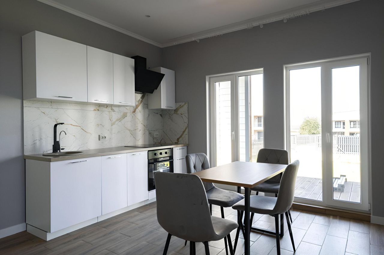 • полностью оборудованная кухня со встроенной варочной панелью и встроенным духовым шкафом