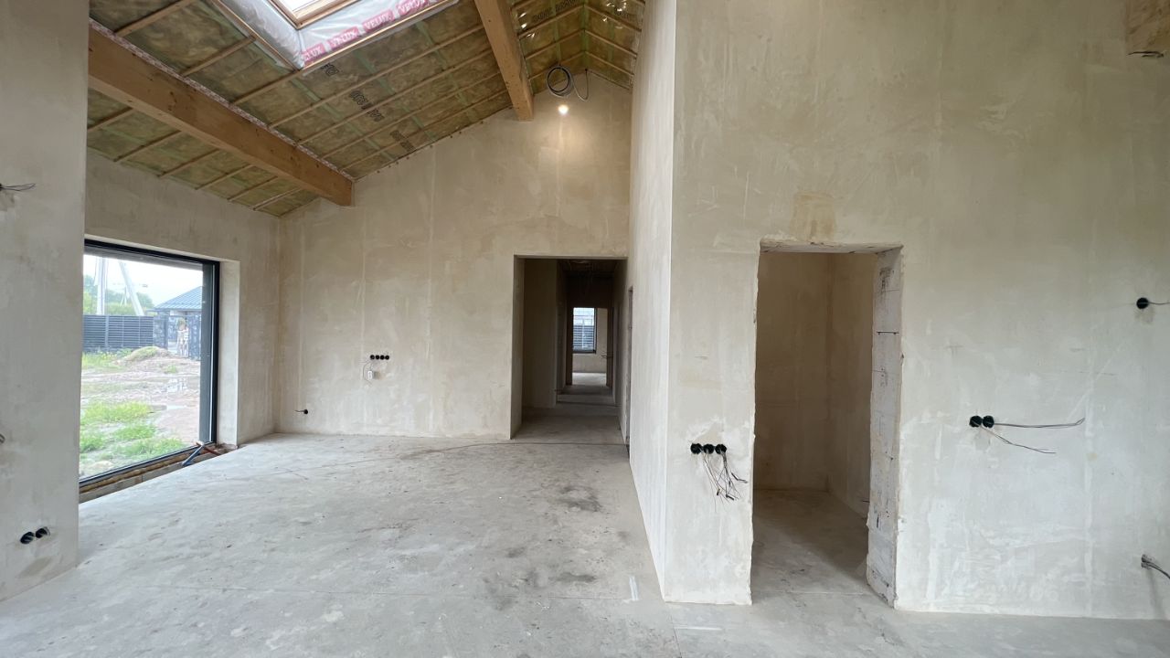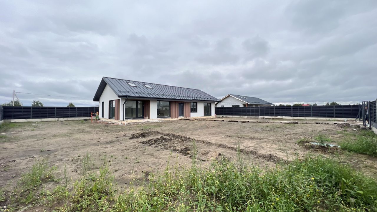 Продажа домов по оригинальному проекту MIKEA 5 FRONT от компании Optimum house в первой очереди нового коттеджного поселка Teppola в деревне Ольгино (Низинское сельское поселение Ломоносовского района). Улица только с 1-этажными домами в едином стиле и единым забором. Аккредитованный застройщик Сбера, продажа от юрлица (подходит под льготные программы ипотеки). Строительство по подряду или покупка готового дома. Статус земли ИЖС, поселок расположен между КАД (3 км) и городом (6 км), удобная транспортная доступность, рядом парки, дворцы, пруды и вся необходимая инфраструктура для постоянного проживания. Поселок закрытый, со своей охраной и управляющей компанией, на въезде остановка общественного транспорта, на территории свой закрытый парк 2 гектара с зонами отдыха, спорта и детскими площадками (сдача осень 2026). Коммуникации: дороги с асфальтовым покрытием, свой внутренний водопровод, прямые договора с энергоснабжающими организациями (Ленэнерго, Газпром). Дом продается в комплектации white box (предчистовая отделка), в дом заведены все коммуникации (электричество, газ, вода), по периметру участка забор, откатные ворота 6 метров, калитка.