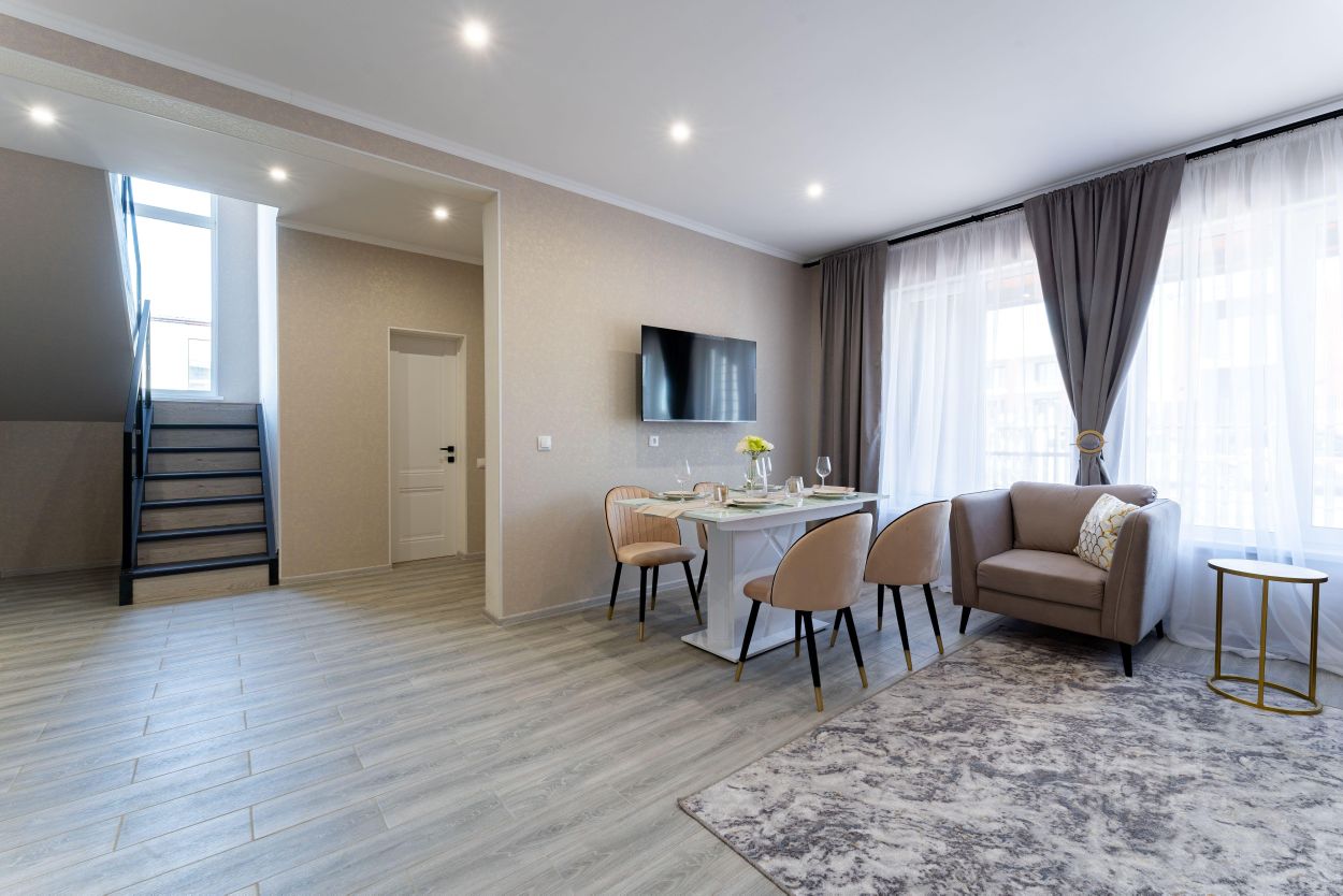 • полностью оборудованная кухня с встроенной варочной панелью и встроенным духовым шкафом,
