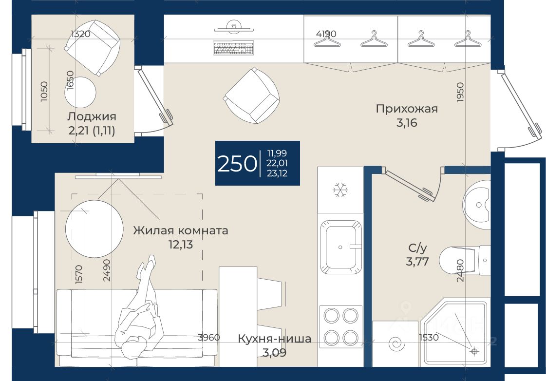 Жилой комплекс ''Новатория'', 1 очередь строительства, Корпус А, Квартира 250 общей площадью 23,12 м2 на 12 этаже.ЖК ''Новатория'' —жилой комплекс комфорт-класса расположен в поселке Новоселье, в окружении леса и Шунгеровского заказника.