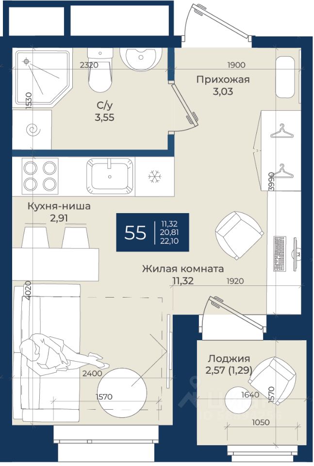 Общая площадь22,1 м2