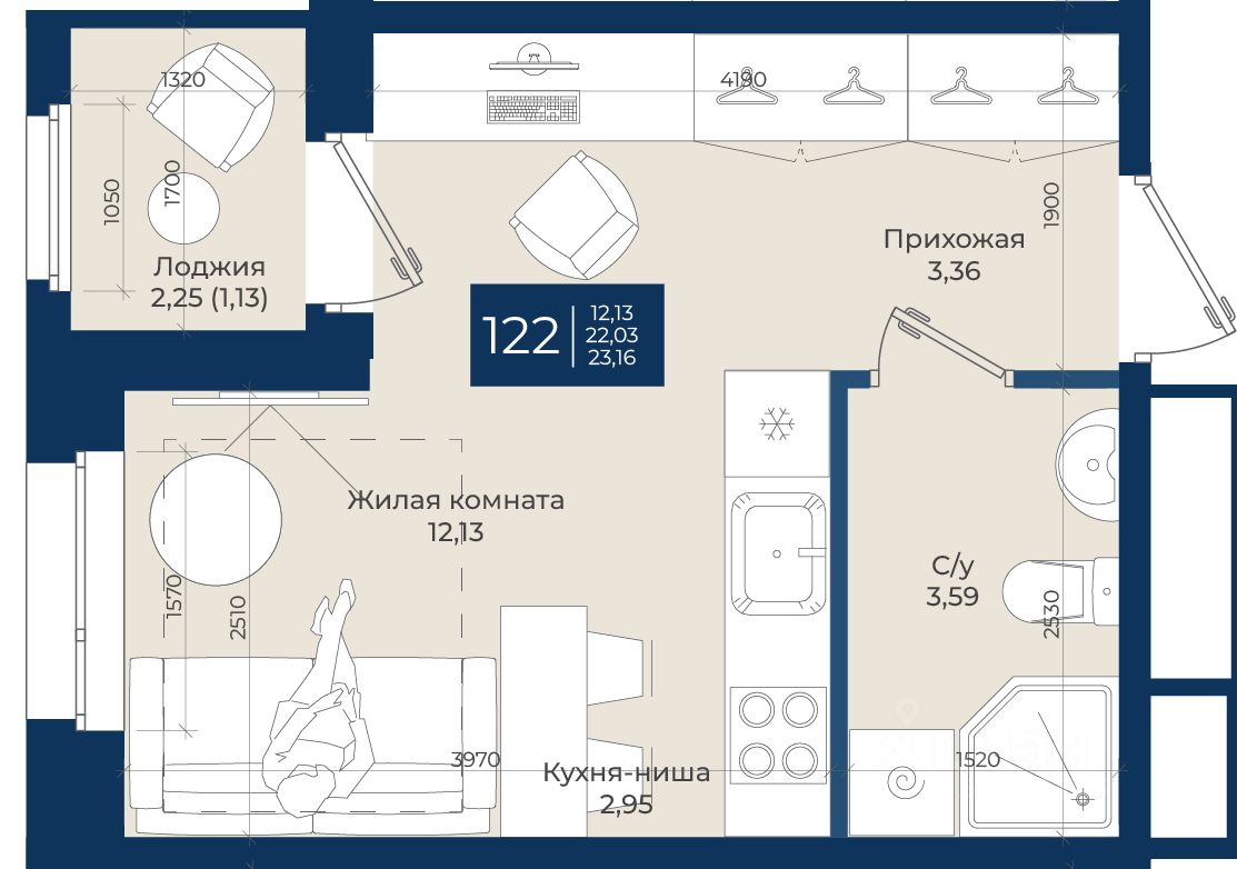 Общая площадь23,16 м2
