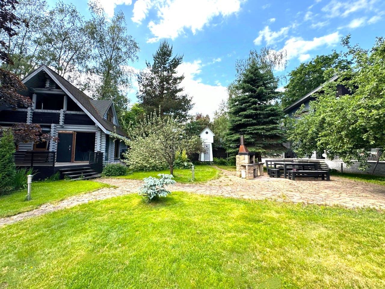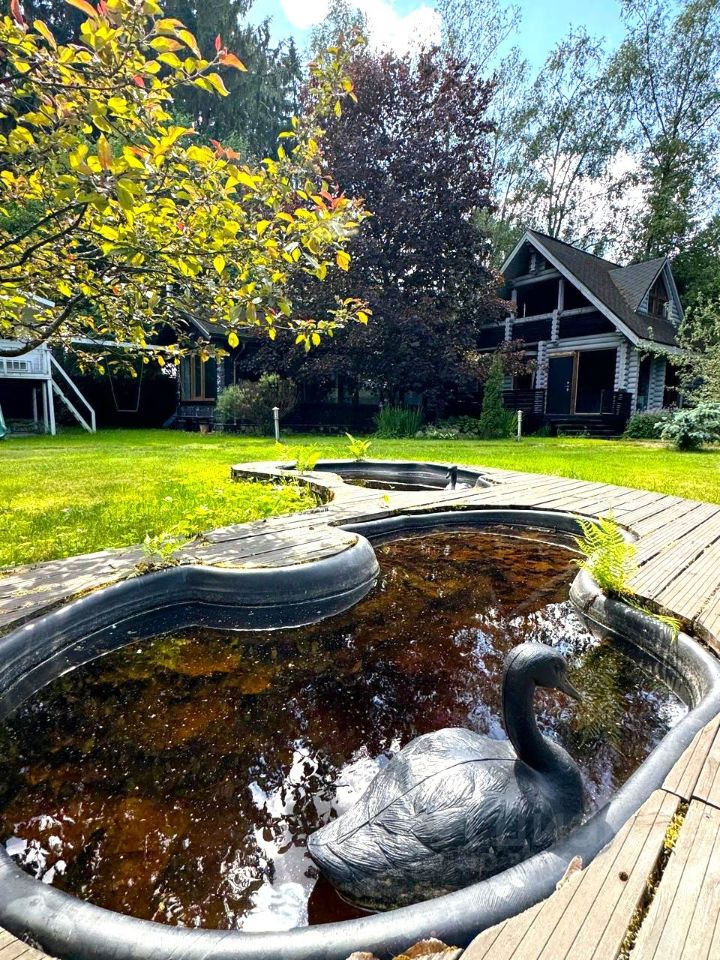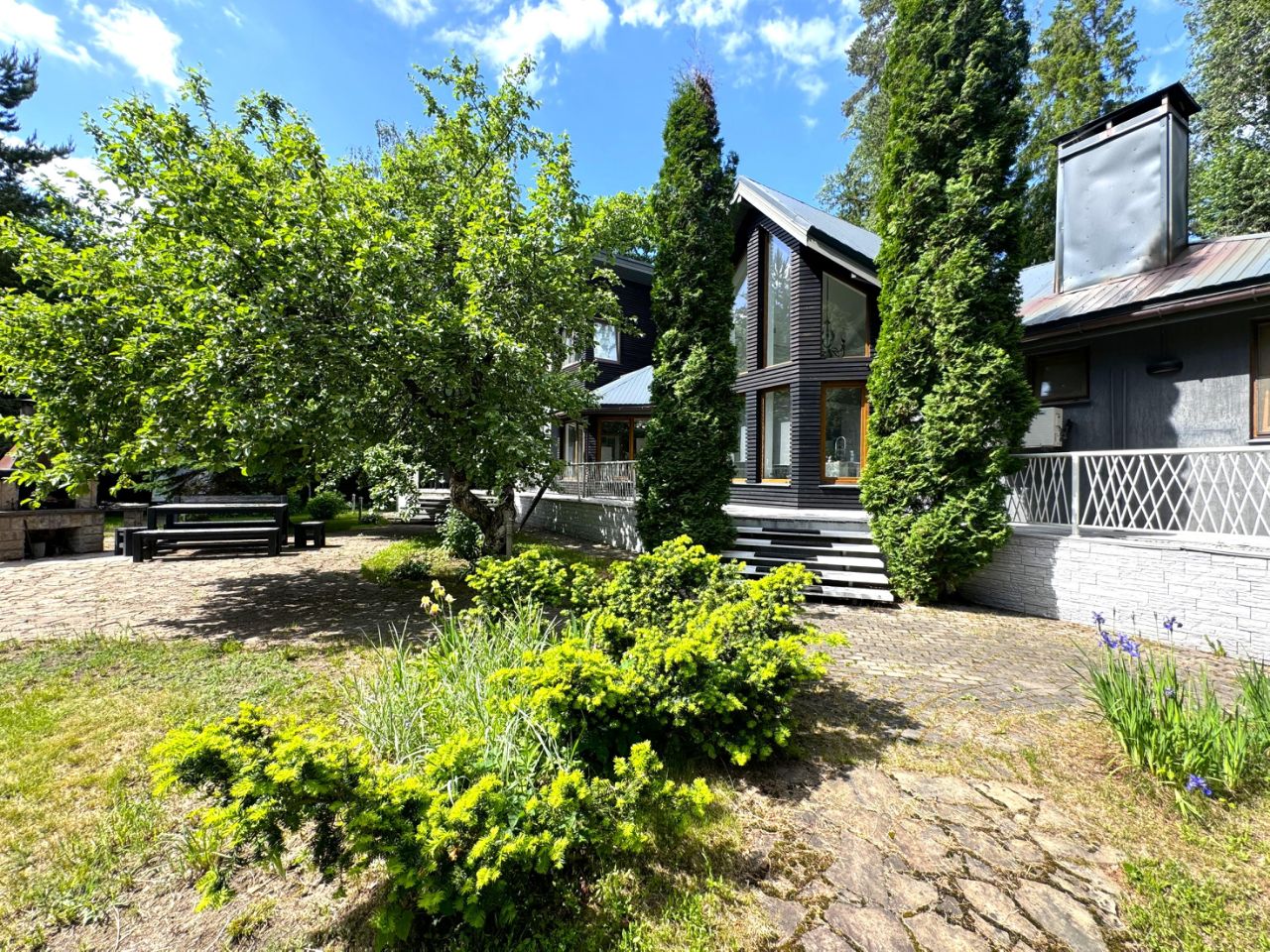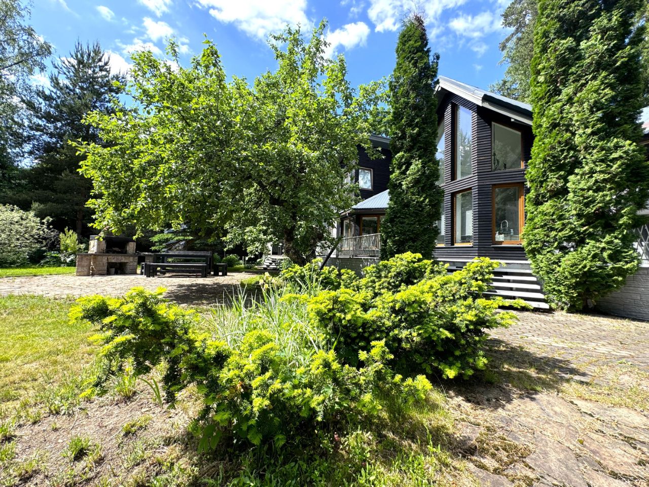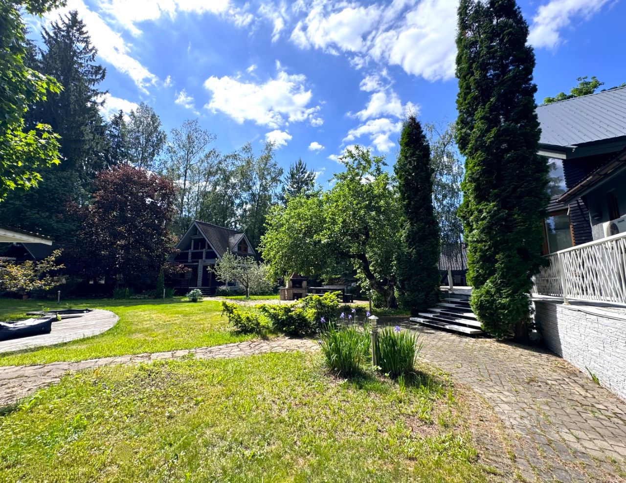 На участке в 25 соток удачно расположены двухэтажный дом для постоянного проживания, общей площадью 390 кв.м., банный комплекс с бассейном, общей площадью 112 кв.м., зона барбекю, искусственный пруд и гараж. Территория участка полностью благоустроена и огорожена забором, выполнен ландшафтный дизайн, сохранены вековые сосны.