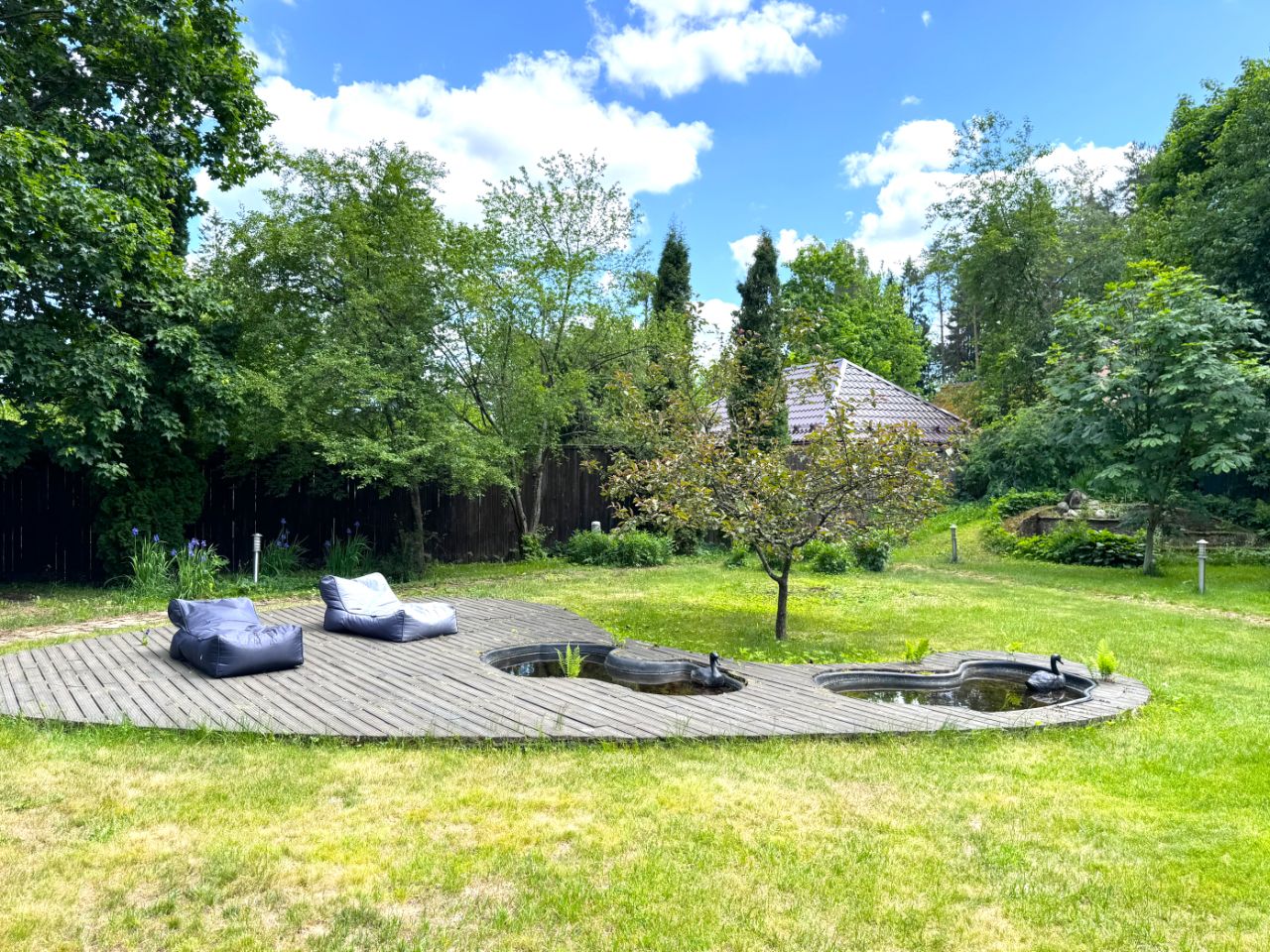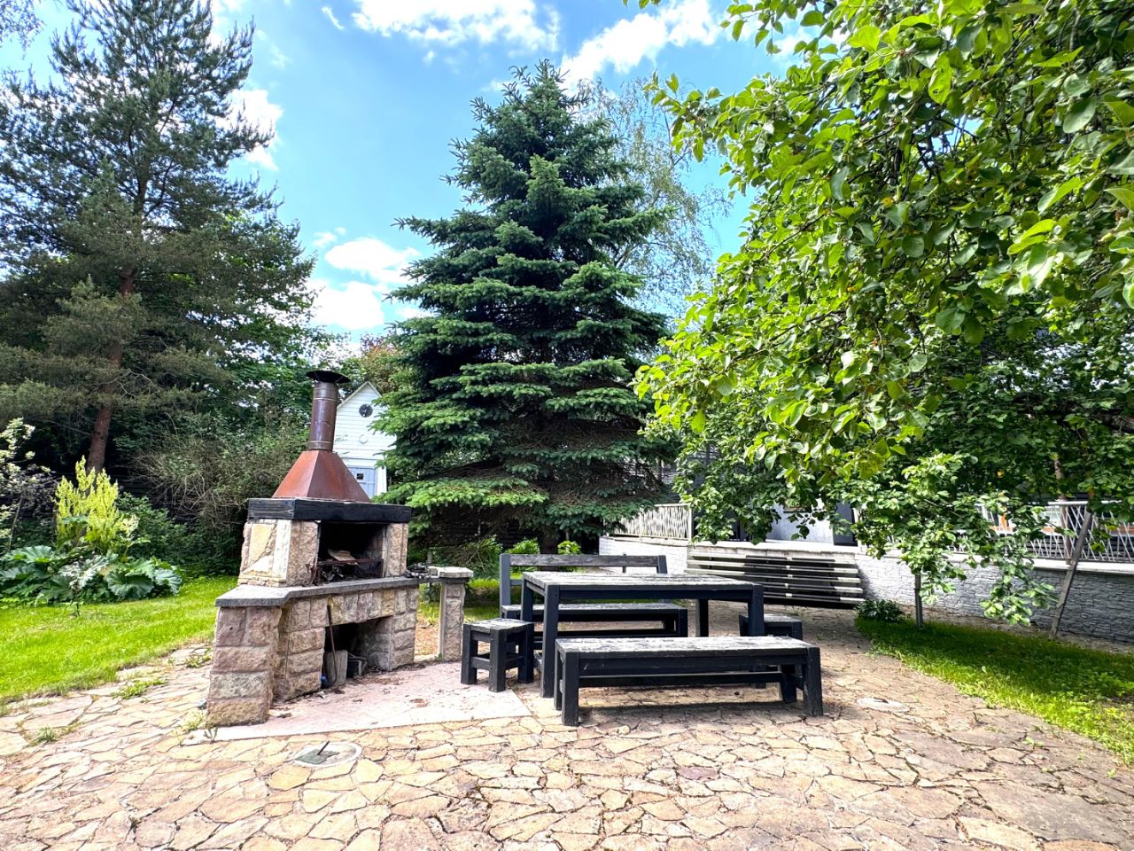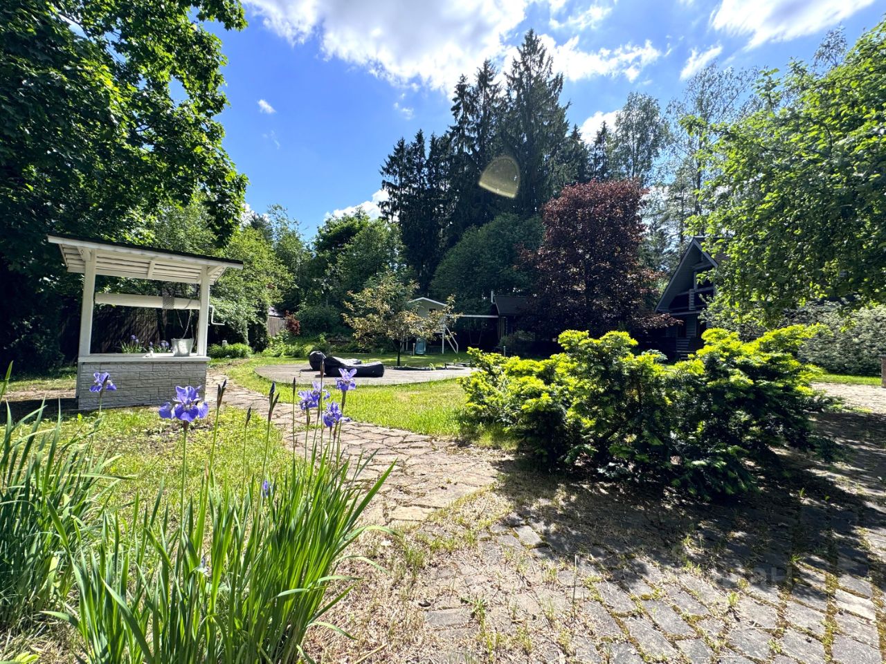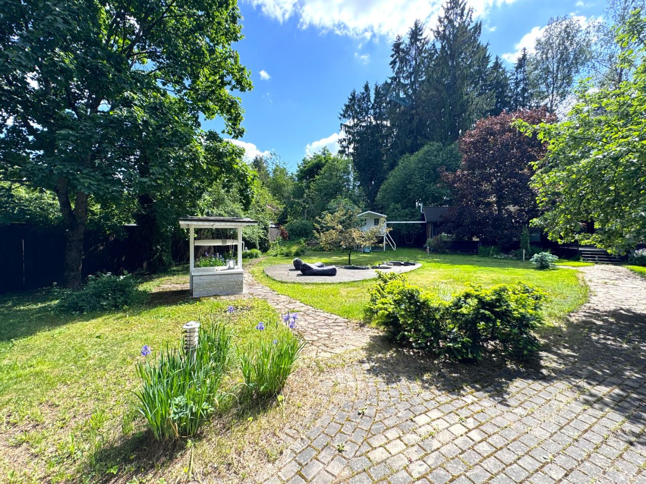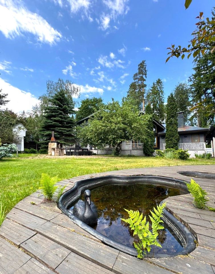 На участке в 25 соток удачно расположены двухэтажный дом для постоянного проживания, общей площадью 390 кв.м., банный комплекс с бассейном, общей площадью 112 кв.м., зона барбекю, искусственный пруд и гараж. Территория участка полностью благоустроена и огорожена забором, выполнен ландшафтный дизайн, сохранены вековые сосны.
