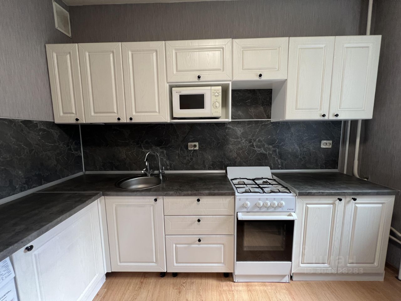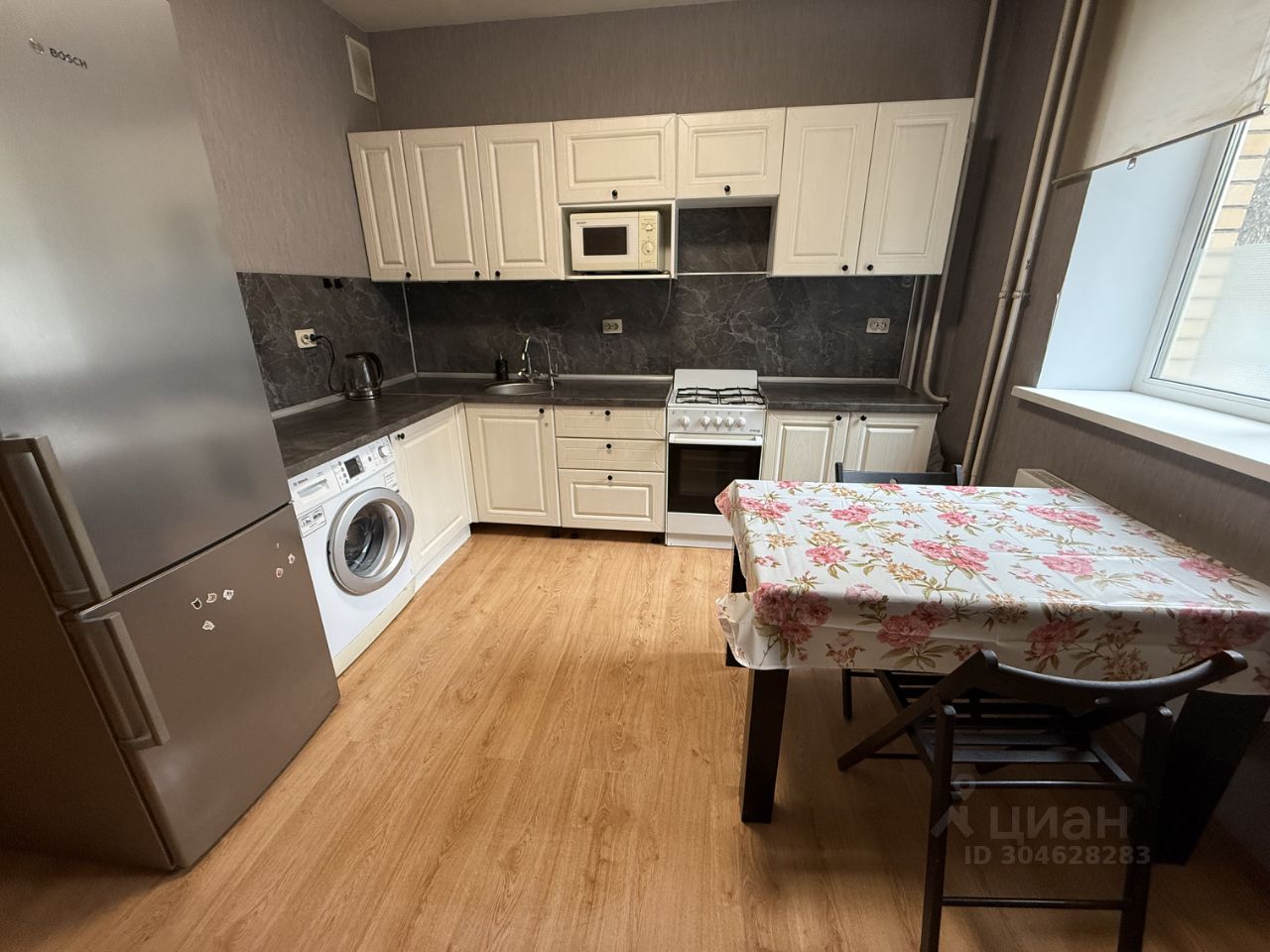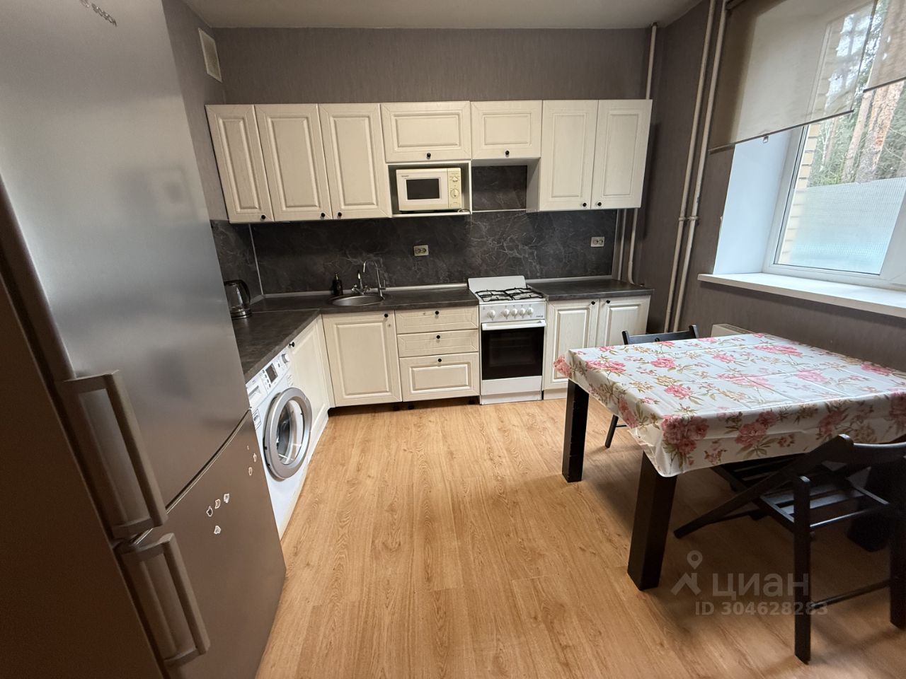 Переклеены ну обои в комнате и коридоре . Ремонт на кухне сделан 2 года назад . В квартире есть все необходимые для жизни : кухонный гарнитур , плита с духовым шкафом , холодильник , посудомоечная машина , микроволновка , стол кухонный , стулья , кровать , раскладной диван , шкафы, кресло .