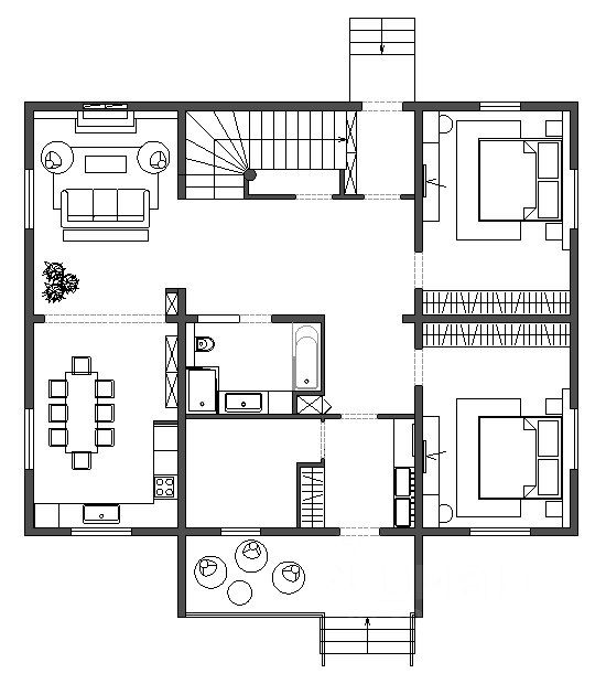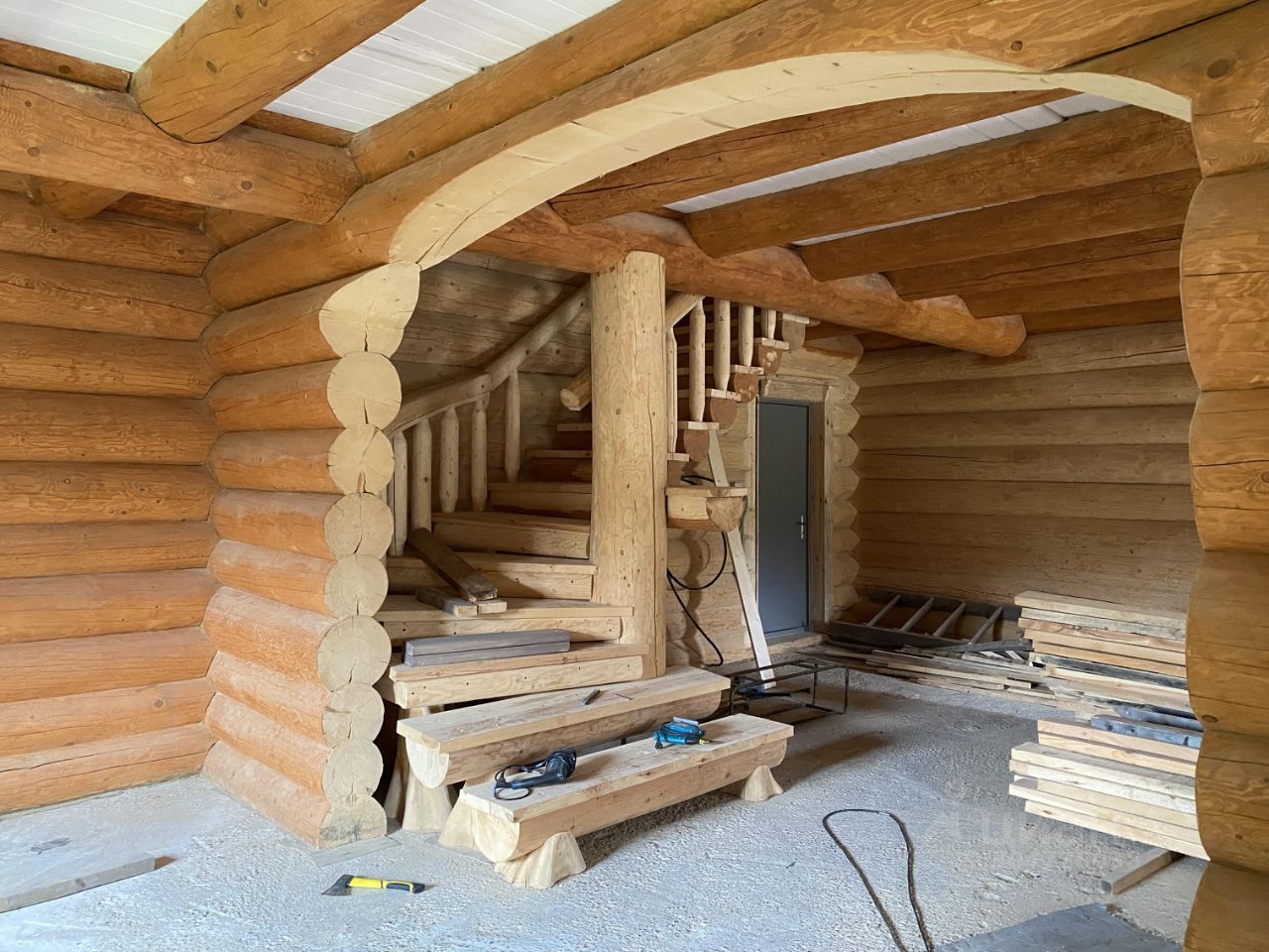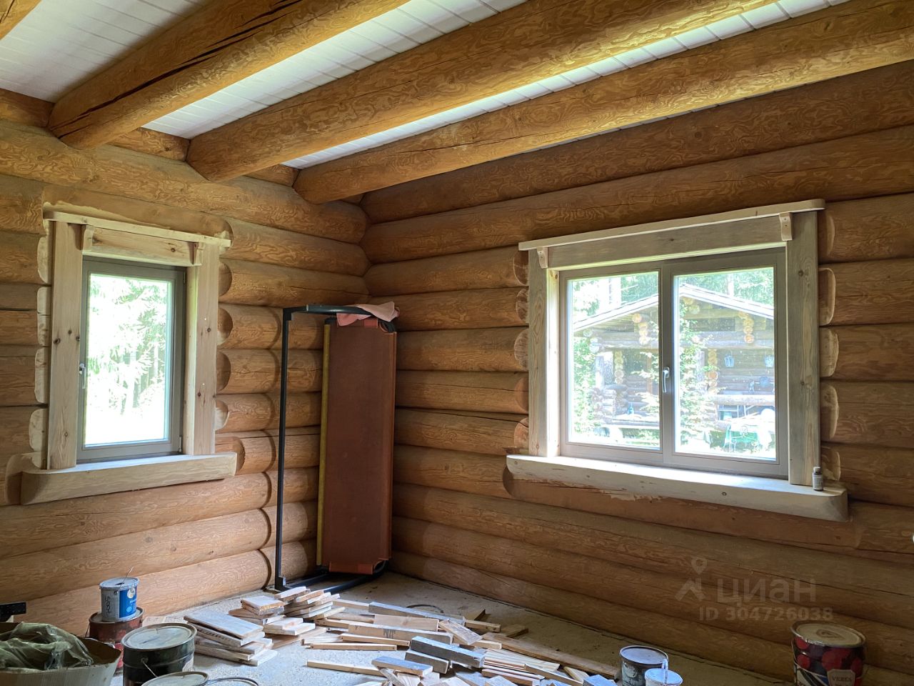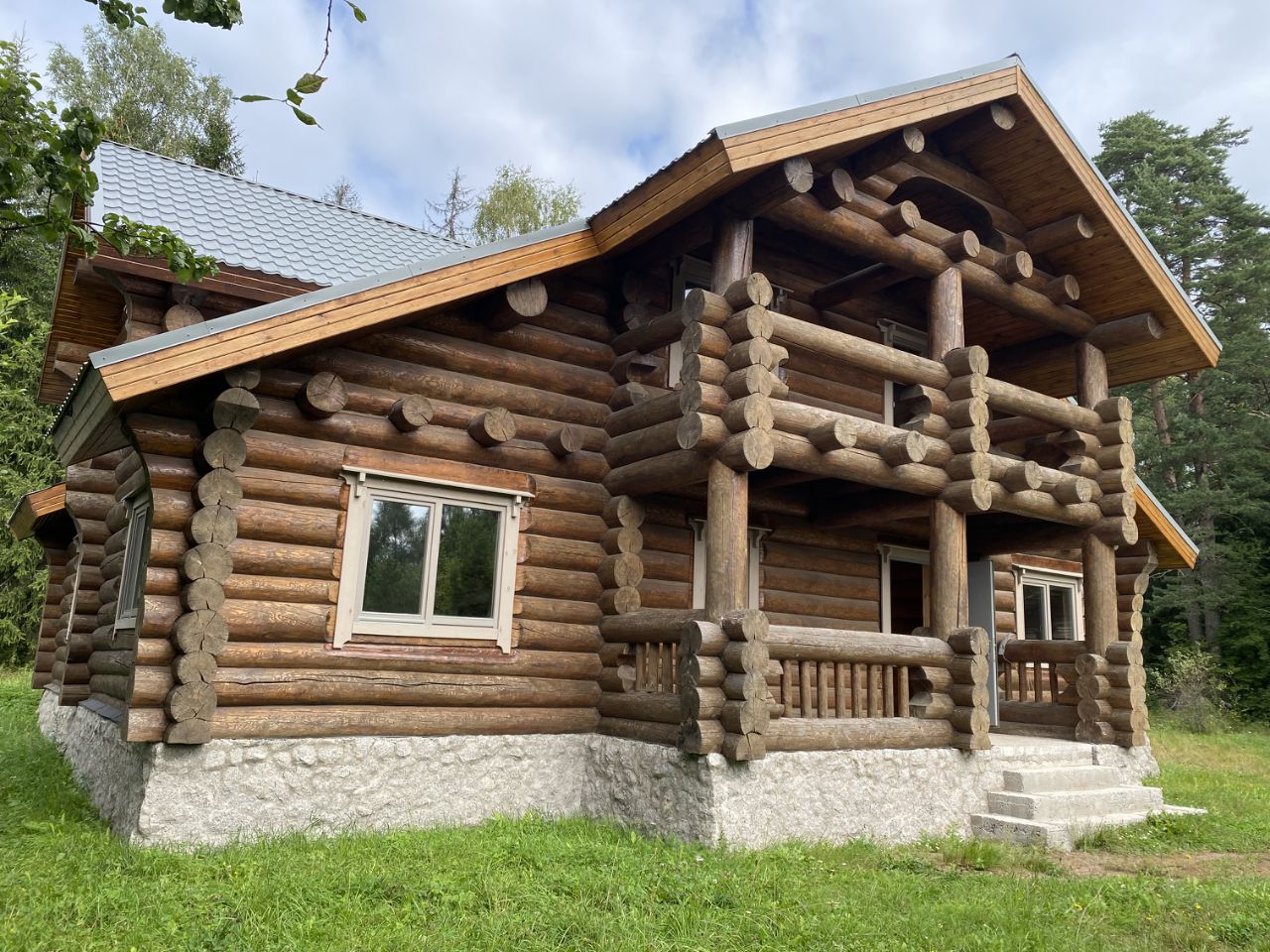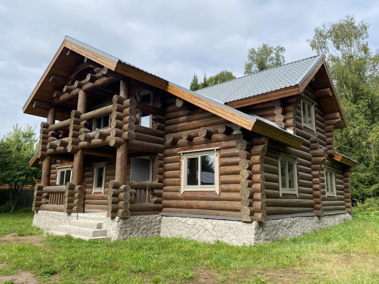 Основной просторный дом 272м.кв 2011г.п. без отделки со всеми заведенными коммуникациями для круглогодичного проживания: 4 спальни, 2 санузла, кухня-гостиная с усиленным местом для печи, просторные холлы, балкон, ленточный фундамент из бетона высотой 1,7м залитый в монолитную плиту, брёвна сосны в диаметре до 0,5 метра, массивная лестница ручной работы на 2 этаж, утепленные деревянные финские окна с двухкамерным остеклением, подоконники, откосы, лестница на 2-й этаж ручной вырезки, широкие металлические входные двери, достаточно помещений вспомогательного назначения, планы двух этажей на фото. Добавлены фото дизайнера интерьеров с возможным обустройством гостиной.