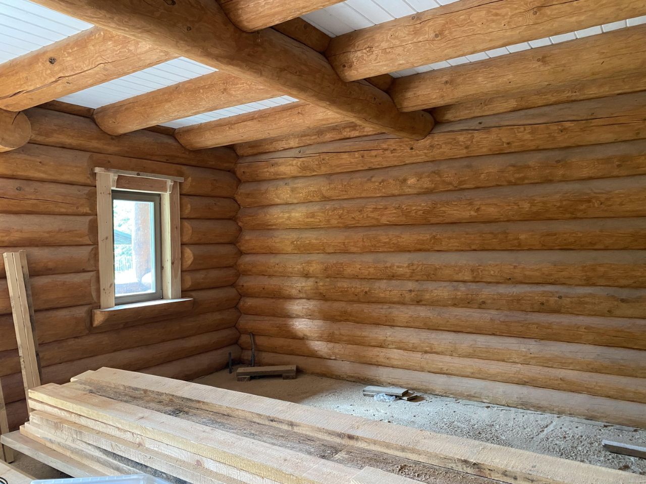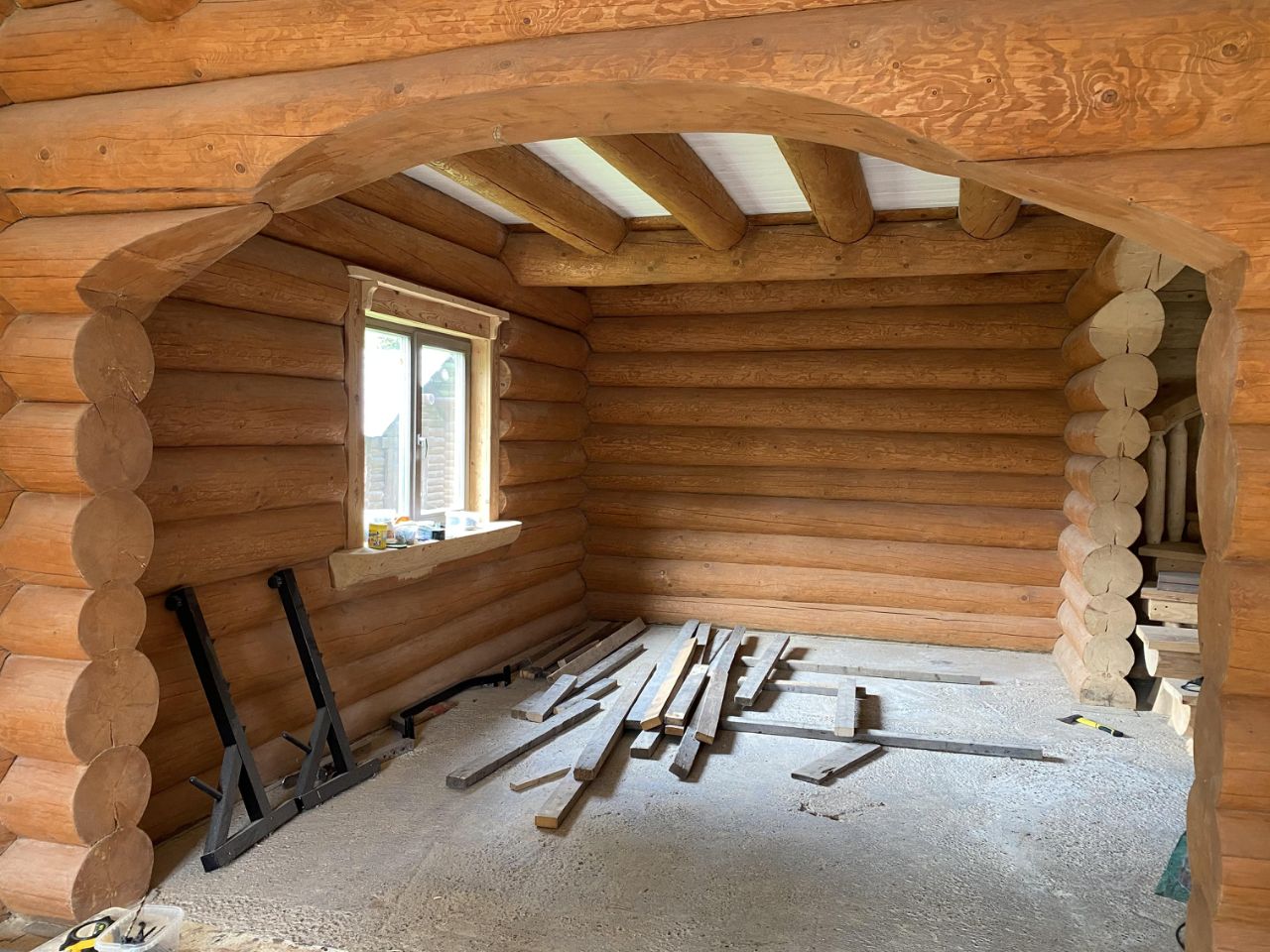 Баня из бревна ручной рубки с комнатой отдыха и парилкой, оснащена мебелью ручной работы из массива дерева, новая печь в упаковке.