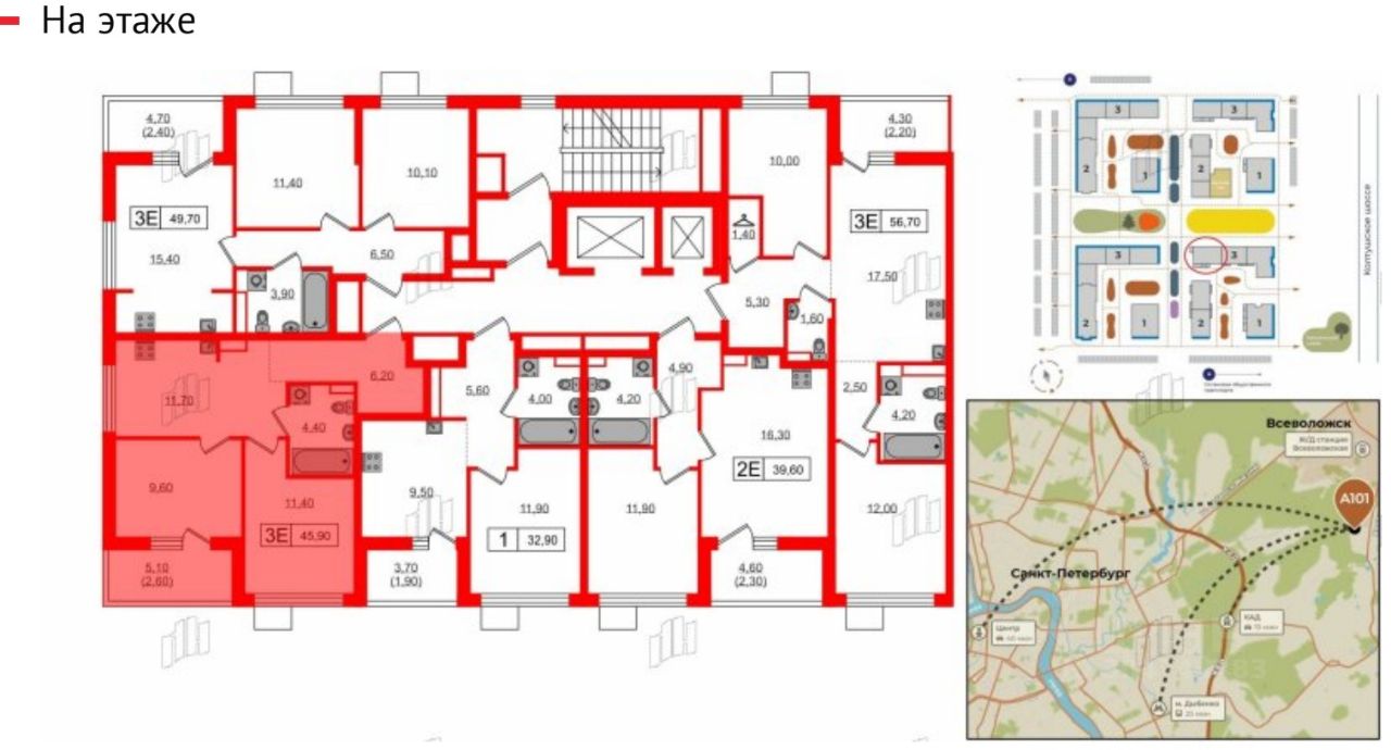 ТРАНСПОРТНАЯ РАЗВЯЗКА: - до аэропорта Пулково - 30 минут - до КАД - 15 минут - до центра Петербурга - 45 минут