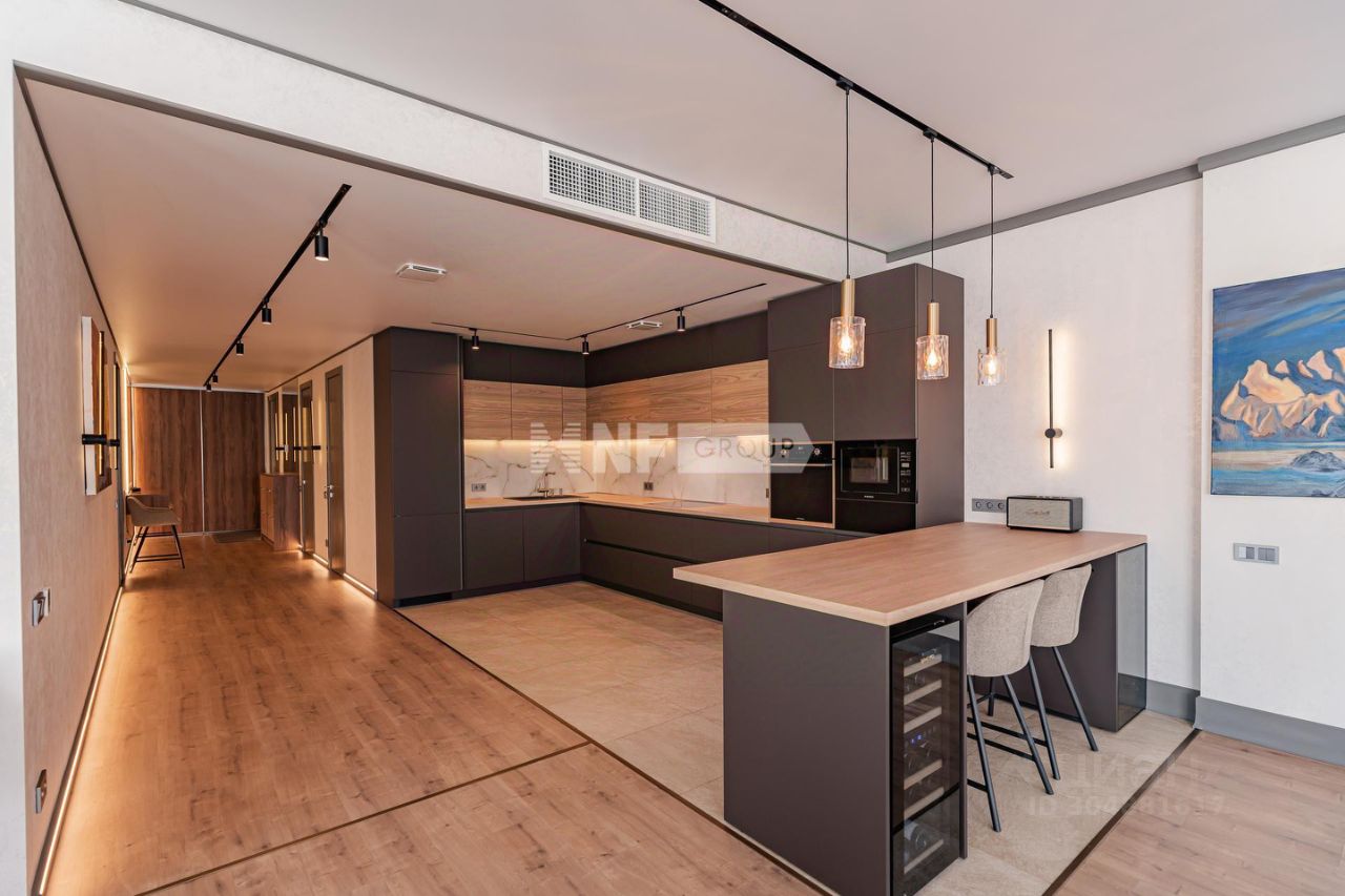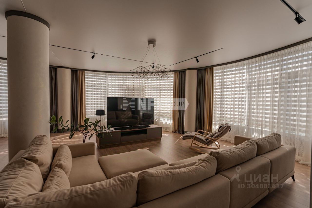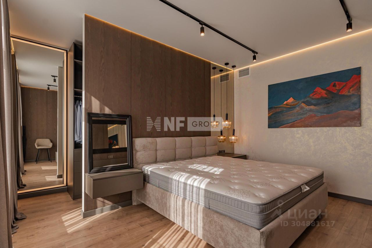 Мастер-спальня с гардеробной и санузлом, гостевая спальня/детская. Два санузла и постирочная. Умный дом. Система вентиляции с рекуперацией, кондиционирование. Шторы с электроприводом на панорамных окнах.