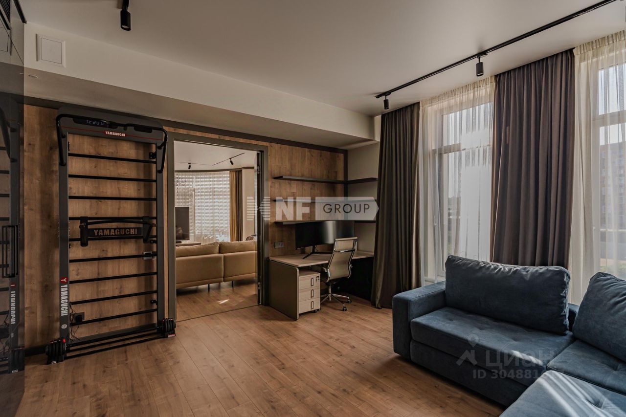 Лот: 82368. Квартира с панорамной гостиной и видом на воду в ЖК ''Леонтьевский Мыс''. Новый современный ремонт, просторная гостиная. Из гостиной виден шпиль Петропавловской крепости и салюты - Алые Паруса, День Победы и другие праздники Вы будете проводить, наслаждаясь салютами