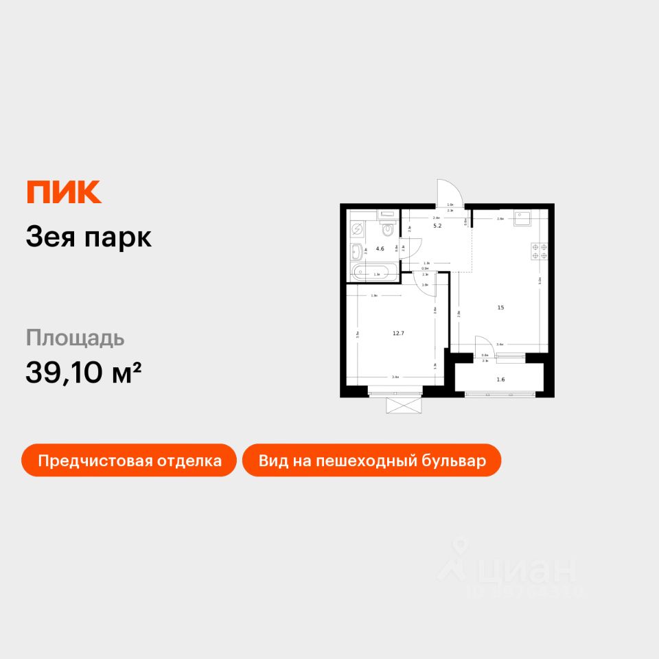 Продаётся 1-комн. квартира площадью 38,9 кв.м на 10 этаже 16 этажного дома (Корпус 2, Секция 1) проекта ПИК Зея парк. Светлый просторный подъезд на уровне земли, функциональная планировка, большие окна, предчистовая отделка.