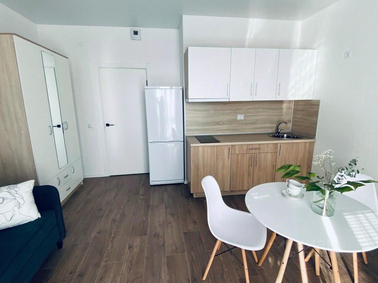 Сдаетcя на длительный срок кваpтира студия 24,5 кв.м. + балкoн, в новом жилoм кoмплeкce ''ЛесАрт'', 20 мин. на авто до метро ''пр. ВЕТЕРАНОВ''.