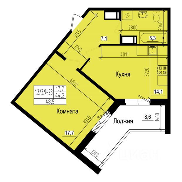 Общая площадь48,5 м2
