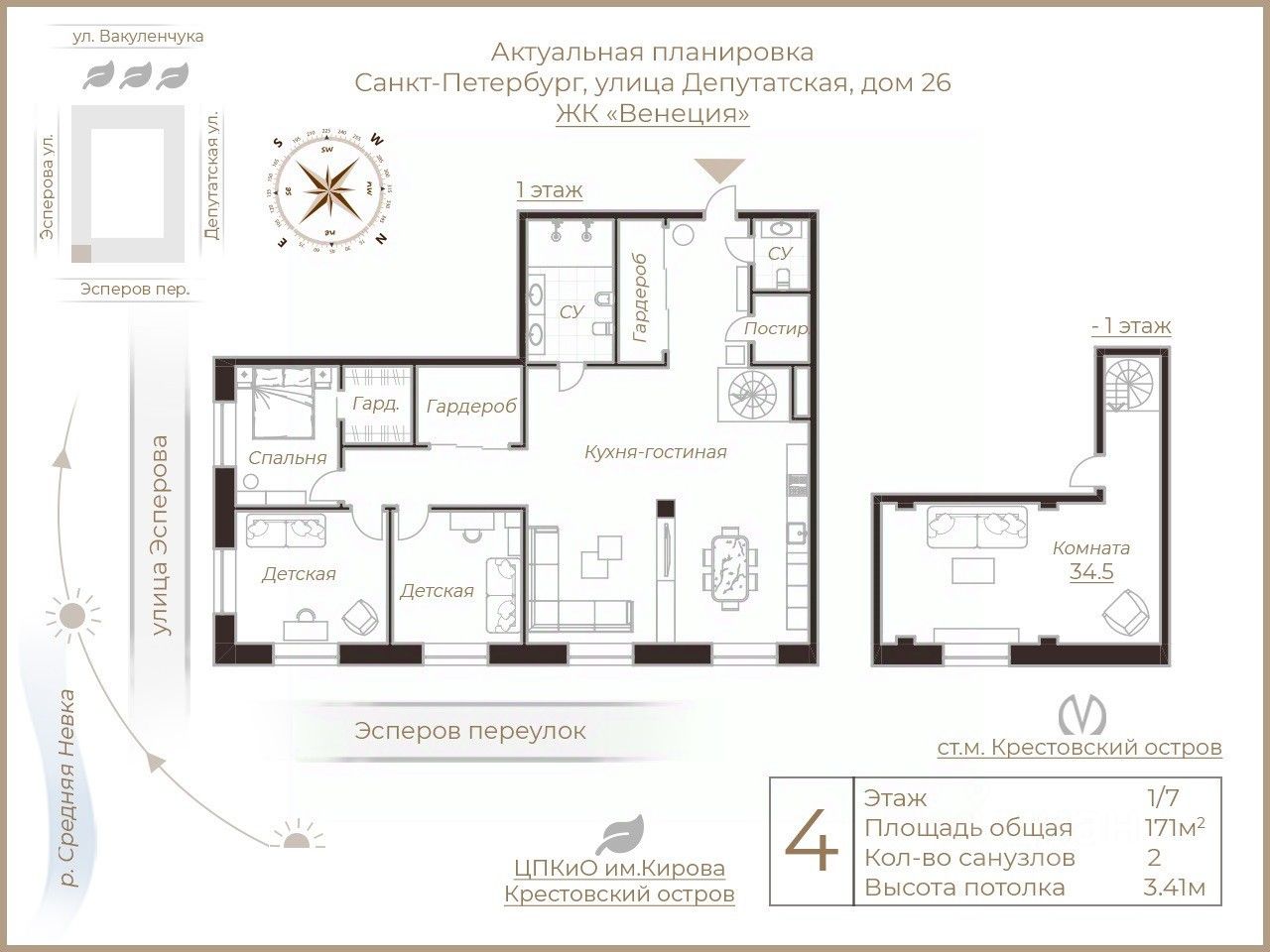 Арт. 70446328 Площадь квартиры 171 кв.м! В самой тихой и респектабельной части Крестовского острова, в жилом комплексе ''Венеция'', выставлена на продажу красивая семейная квартира. Вдохновлённый венецианским палаццо, современный дом в духе итальянской архитектуры полностью оправдывает своё название.