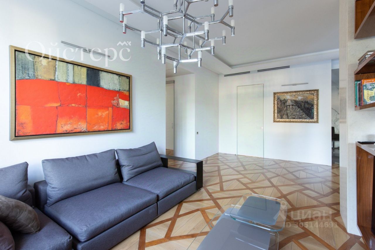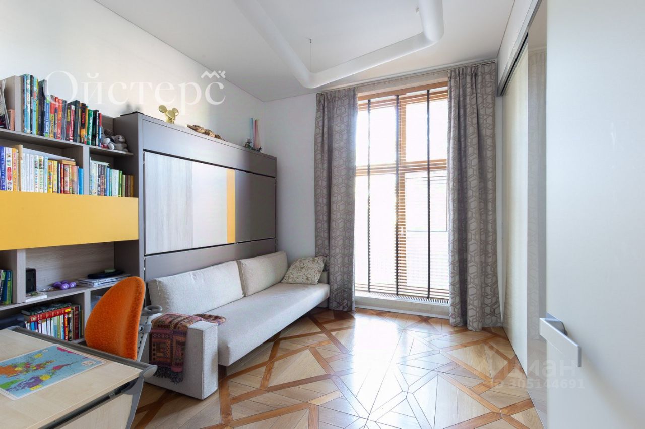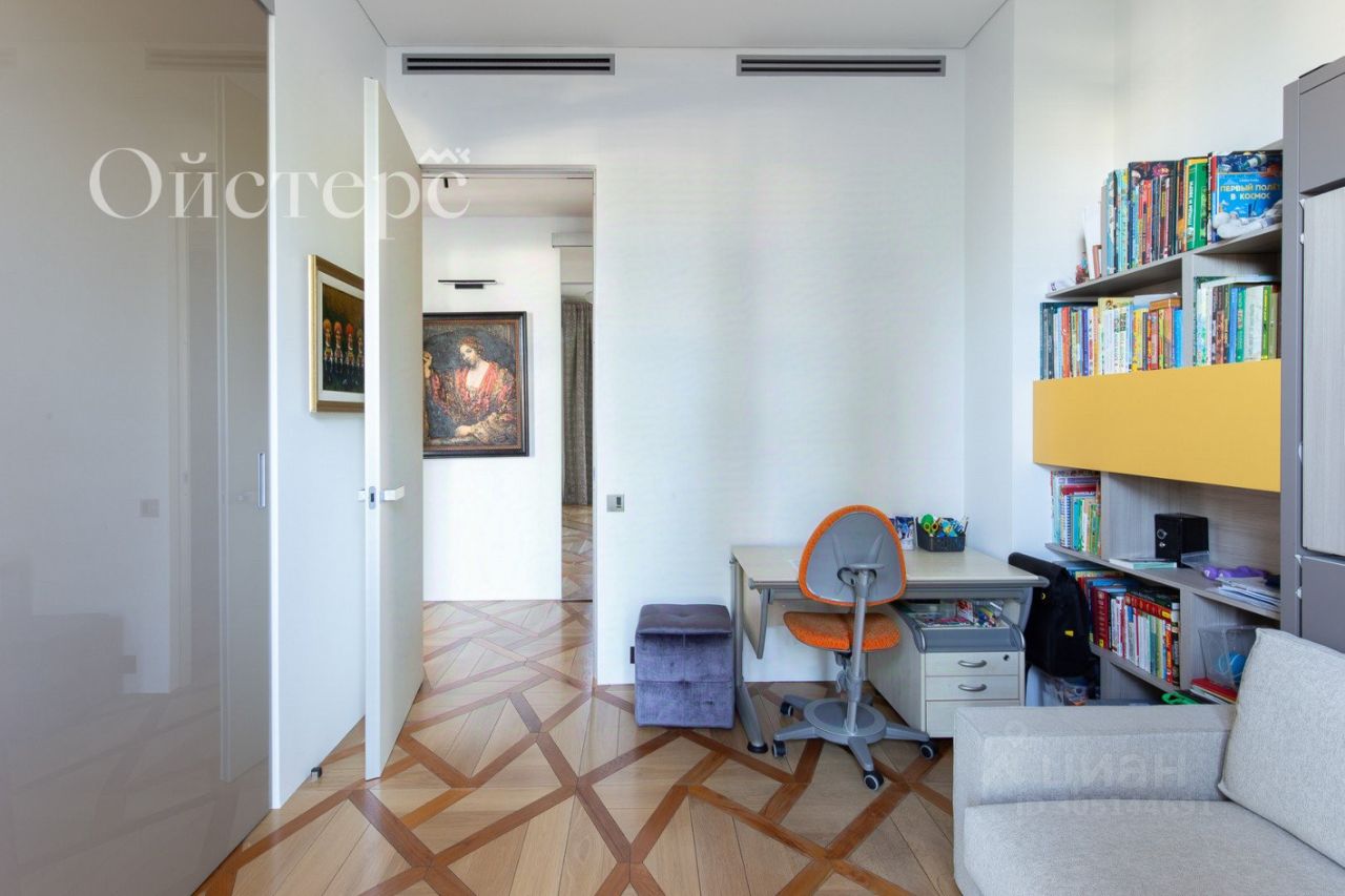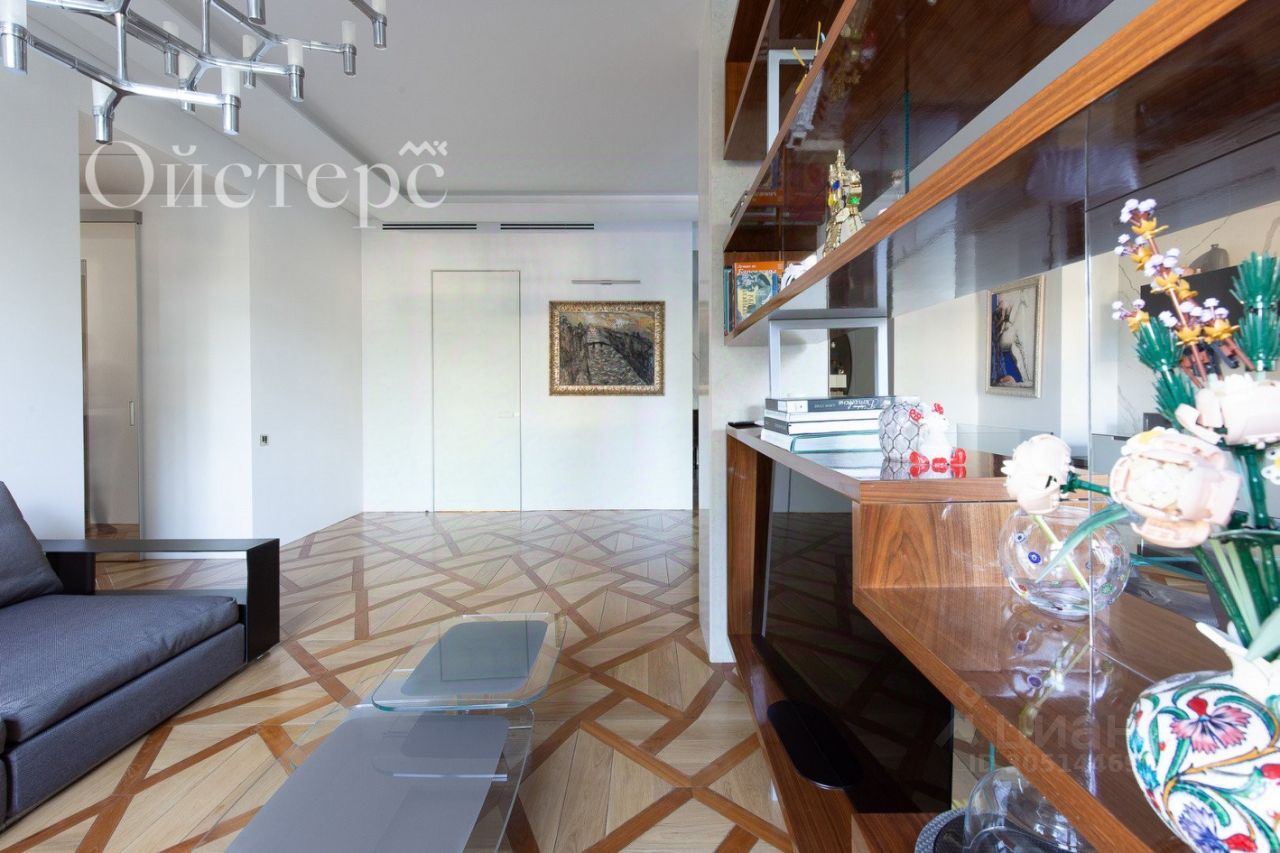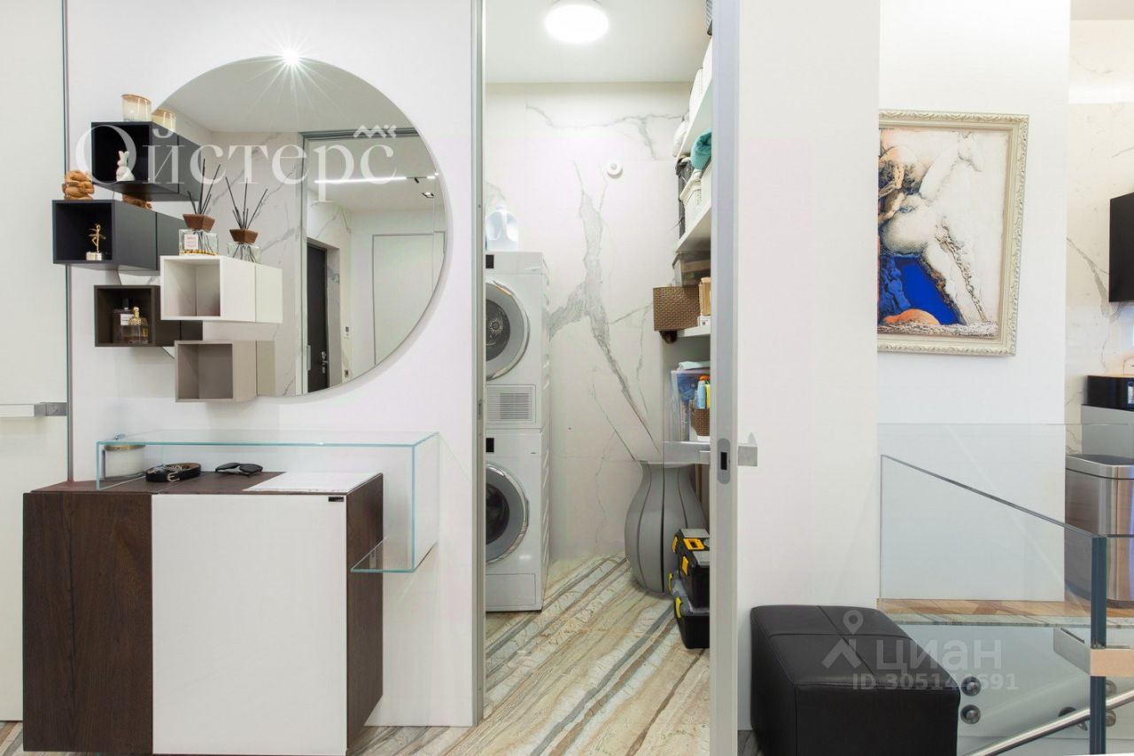 О квартире Квартира отличается современным дизайнерским ремонтом премиального уровня. Интерьер украшен наборным паркетом, натуральным камнем и дизайнерским светом. Продуманная и функциональная планировка включает в себя умный дом с множеством сценариев освещения, тёплые полы и управление затемнением окон. Также установлена система приточно-вытяжной вентиляции с кондиционированием. В квартире два уровня. На первом уровне расположены просторная кухня-гостиная, три спальни, гардеробные комнаты, хозяйственная комната и два санузла. Панорамные окна и напольные радиаторы отопления обеспечивают комфорт в любое время года. Нижний уровень квартиры площадью 34,5 кв. м может служить дополнительной спальней, игровой или местом для хобби и увлечений. Высота потолков составляет 3,4 метра. Вместе с квартирой предлагается место в подземном паркинге.