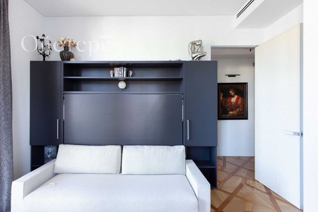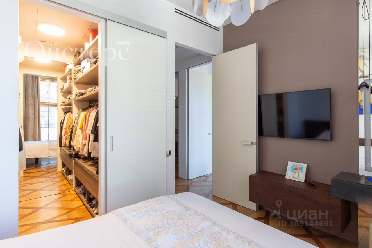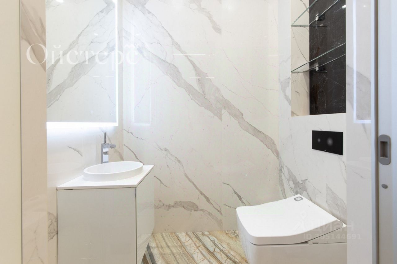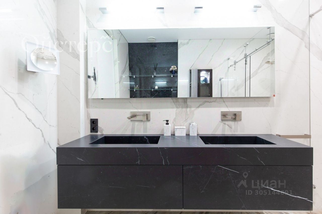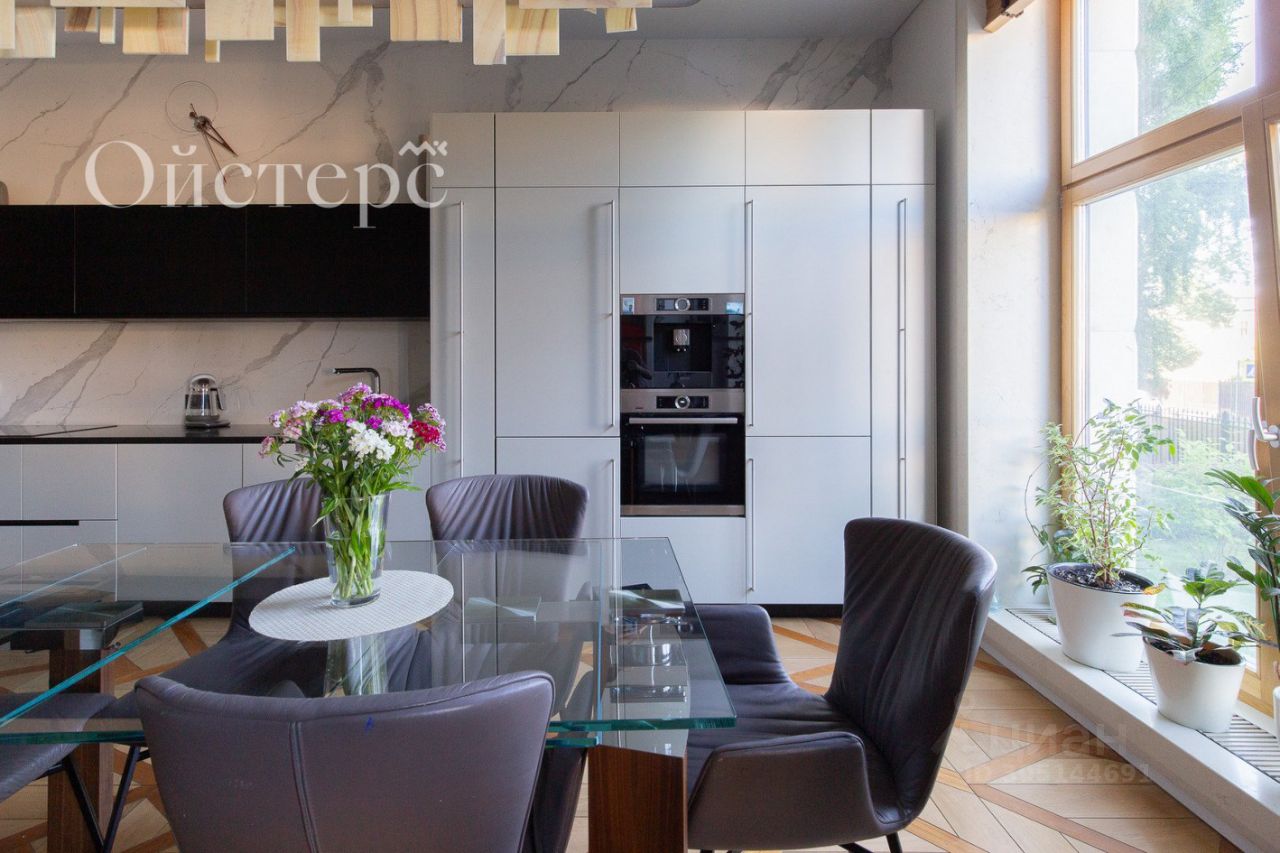 О квартире Квартира отличается современным дизайнерским ремонтом премиального уровня. Интерьер украшен наборным паркетом, натуральным камнем и дизайнерским светом. Продуманная и функциональная планировка включает в себя умный дом с множеством сценариев освещения, тёплые полы и управление затемнением окон. Также установлена система приточно-вытяжной вентиляции с кондиционированием. В квартире два уровня. На первом уровне расположены просторная кухня-гостиная, три спальни, гардеробные комнаты, хозяйственная комната и два санузла. Панорамные окна и напольные радиаторы отопления обеспечивают комфорт в любое время года. Нижний уровень квартиры площадью 34,5 кв. м может служить дополнительной спальней, игровой или местом для хобби и увлечений. Высота потолков составляет 3,4 метра. Вместе с квартирой предлагается место в подземном паркинге.