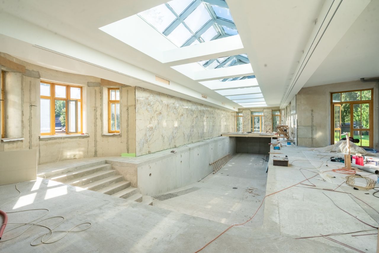 Техническая часть: - Фундамент с цокольным этажом, плита 35см, - Стены из полнотелого кирпича (толщиной 1.5-2.5 кирпича) + утеплитель + наружный облицовочный декоративный кирпич или штукатурка, - Перекрытия ж/б монолитные, - Кровля цементно-песчаная черепица или эксплуатируемая кровля, - Окна современные деревянные стеклопакеты, на крыше металлические с триплексом и с каленым стеклом, - - Внутренняя отделка поместья: ''white box'', идут работы по чистовой отделе. Сети электроснабжения, водоснабжения, отопления - полностью выполнены. На 1 этаже установлены мраморные полы.