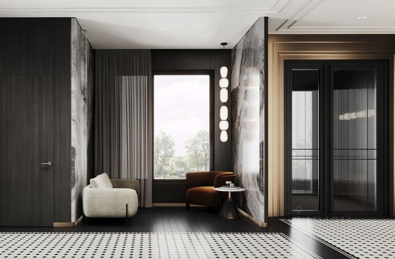 Авторы проекта интерьеров — архитектурное бюро Syntaxis, одно из наиболее успешных в России, обладатель премии Best for Life Design Award. Специалисты бюро переосмыслили стилистический язык прошедших эпох, используя ключевые элементы северного модерна как источника вдохновения. Парадный лобби отличается функциональностью и продуманностью деталей. Дизайнерские решения будут воплощены в жизнь с использованием материалов премиального качества. Особая гордость парадного лобби — каминный зал, где жители дома смогут проводить встречи, мероприятия или просто отдыхать.