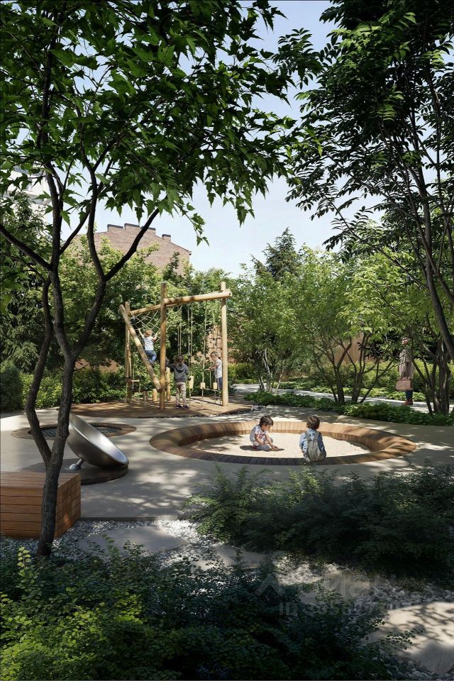 Во дворе дома расположится приватный скандинавский сад Hideaway, созданный студией L.Buro лучшей ландшафтной компанией России 2025 года. В проекте сада объединяются стойкость норманнов и романтизм петербуржцев, северная сдержанность и глубинная чувственность культурной столицы.
