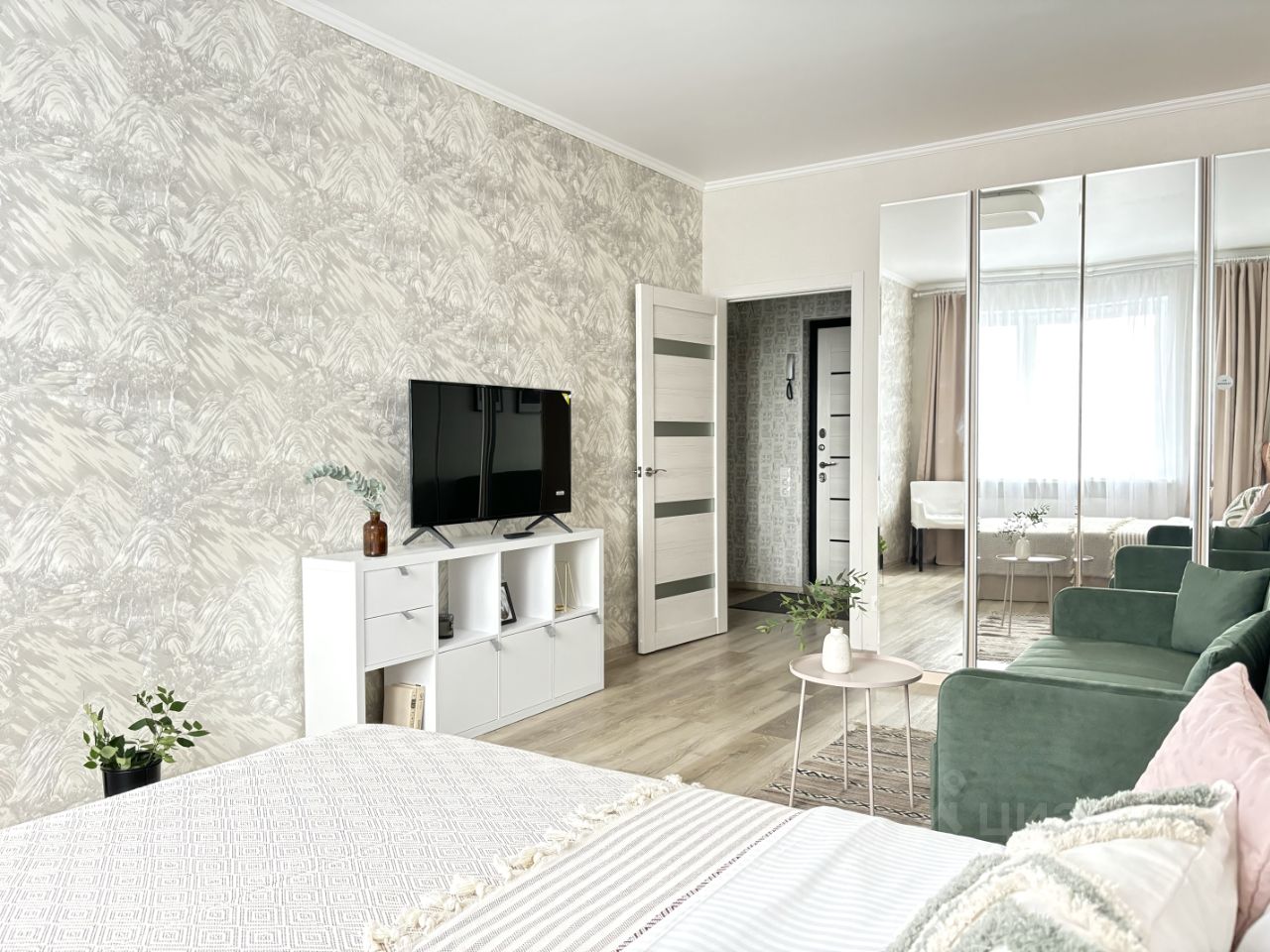 Светлая однокомнатная квартира с изолированной спальней для комфортного проживания 1 гостя или пары.