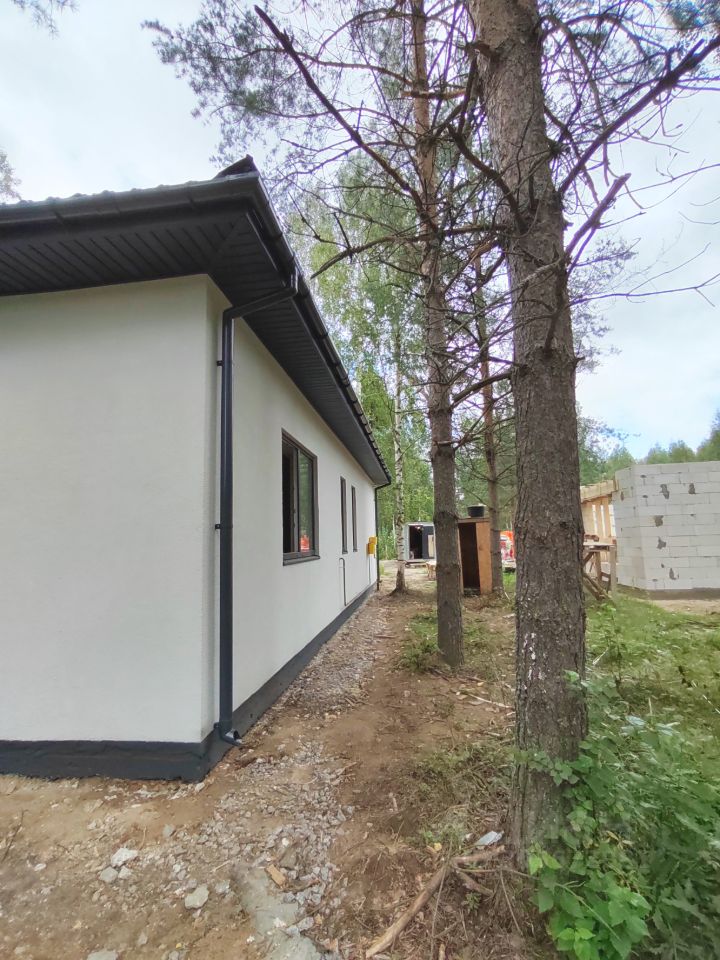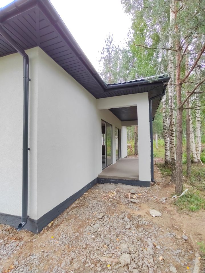 О доме: - Дом сдан, присвоен почтовый адрес - ГАЗ заведен, септик установлен. - скважина. - на ж\б плите - 144кв.м. теплый контур + терраса 12кв.м. - газоблоки 400мм, снаружи оштукатурен ''короед'' - эл-во 15 кВт - внутренняя отделка: стены оштукатурены, теплый пол, цементная стяжка. Вам остается воплотить свои дизайнерские идеи - цветовые решения, мебель, - подводка коммуникаций в дом выполнены, - теплые полы, - четырехскатная крыша металлочерепица (можно сделать мансардный этаж) - качественные окна с двойным стеклопакетом с повышенным коэффициентом энергосбережения, - продуманная современная планировка с мастер-спальней, с террасой с видом на лес, с панорамными окнами
