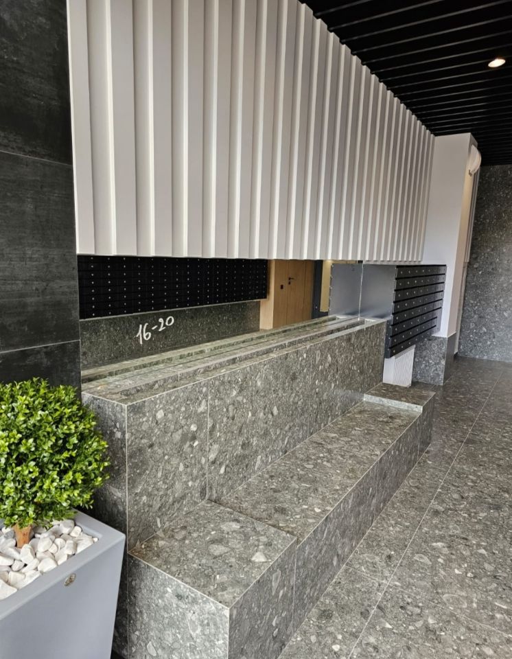 Дом был построен в 2023 году, находится в отличном состоянии. В доме есть два пассажирских и один грузовой лифт, что удобно для перемещения с крупными вещами. Для владельцев автомобилей предусмотрена наземная парковка под шлагбаум.