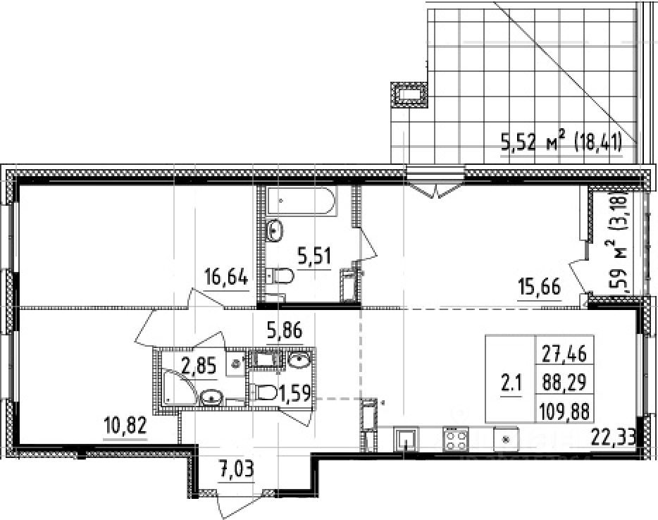 Квартира без ремонта, что дает вам возможность создать интерьер по своему усмотрению. Здесь три совмещенных санузла, что очень удобно для большой семьи или приема гостей. Также в квартире есть одна лоджия и один балкон, где можно обустроить уютные зоны отдыха.