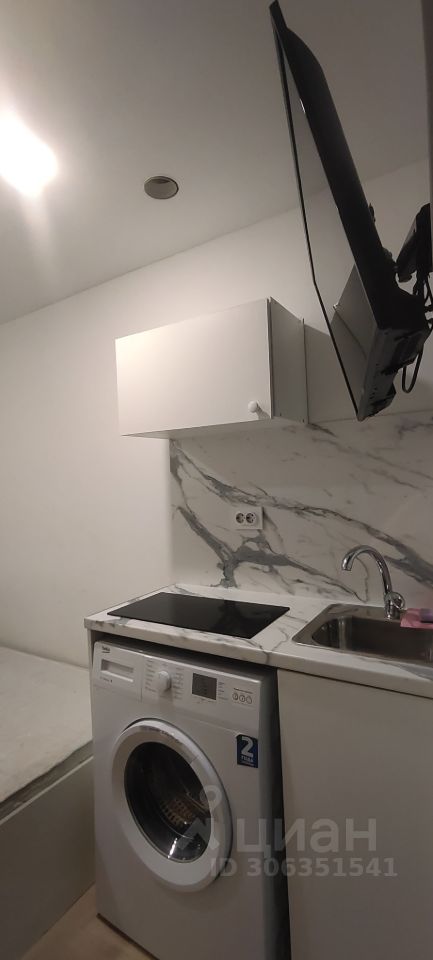 Встроенная кухня, стиральная машина, холодильник, э/чайник, кухонный гарнитур, индукционная плита, вплоть до посуды.